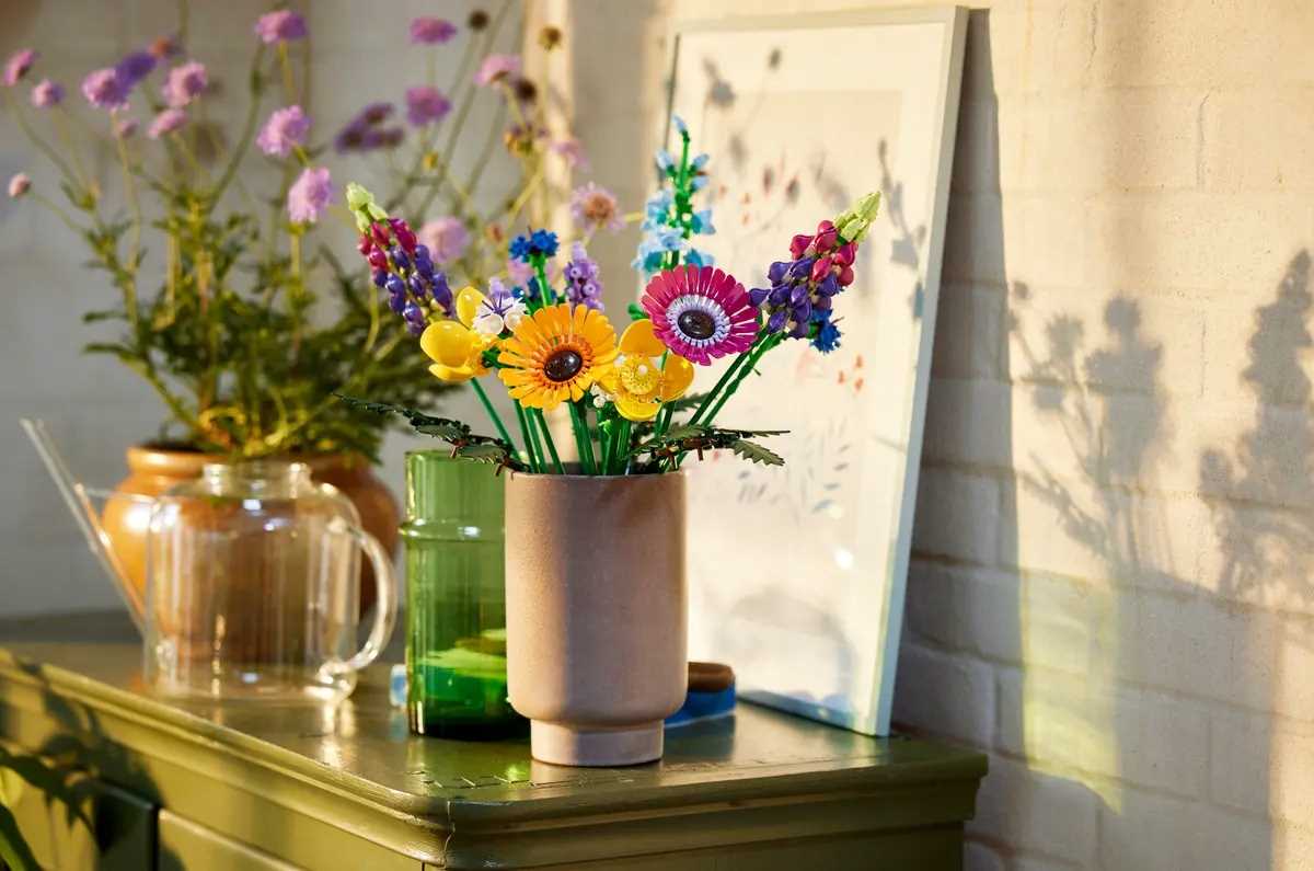 LEGO, LEGO The Botanical Collection, Bukiet z polnych kwiatów, klocki LEGO, kwiaty z LEGO, kreatywność, budowanie, zestaw dla dorosłych, florystyczny model, klocki z roślin, ekologiczne klocki, trzcina cukrowa, zrównoważone źródła, floryści, miłośnicy kwiatów, dekoracja wnętrz, wazon LEGO, kreatywna zabawa, zestaw botaniczny, inspiracja naturą, chabry, lawenda, maki walijskie, trybula leśna, paproć skórzasta, gerbera, ostróżki, łubin, składanie modeli, LEGO Icons, lego bukiet, długi łodygi, eksperymentowanie z kompozycjami, prezent dla dorosłych, kwiatowe kompozycje, kompatybilność klocków, wysokiej jakości, zgodność z normami, zestaw kolekcjonerski, budowanie z instrukcją, LEGO Builder, aplikacja LEGO, Polska, Warszawa, bukiet LEGO, model LEGO, kreatywne budowanie, składanie bez wazonu, rozwijanie pasji, elementy LEGO.
