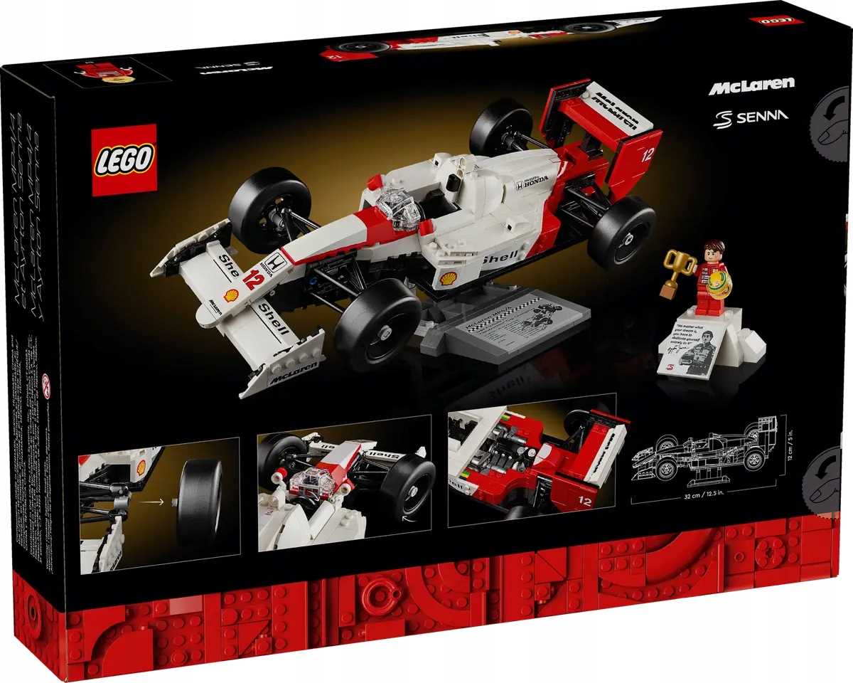 LEGO, LEGO Icons, McLaren MP4/4, Ayrton Senna, zestaw konstrukcyjny, dla dorosłych, replika samochodu, Formuła 1, bolid wyścigowy, detale realistyczne, minifigurka Senny, układ kierowniczy, zawieszenie wahaczowe, regulowane skrzydło, opony slicki, dźwignia zmiany biegów, silnik V6 turbo, podstawka do ekspozycji, statystyki pojazdu, kultowy cytat, sport motorowy, kolekcjonerski zestaw, miłośnicy wyścigów, replika bolidu, kreatywność, ciekawostki, LEGO Polska, Warszawa, prezent dla automaniaków, biurko dekoracja, skala modelu, prezent urodzinowy, pasja motoryzacyjna, przeżyj historię, ekscytująca zabawa, zestaw ikon, edycja kolekcjonerska, dokładne odwzorowanie, zestaw dla dorosłych, zabawa LEGO, kultowy pojazd, ikony LEGO, klasyczny model.