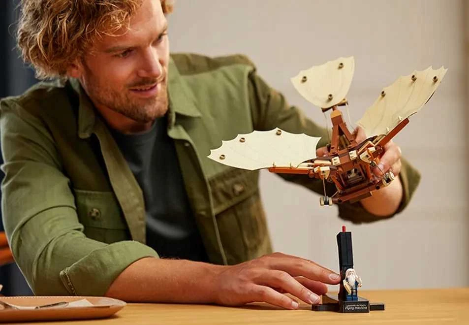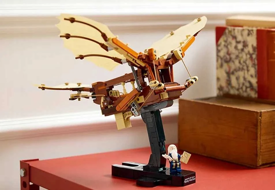 LEGO, Maszyna latająca Leonarda da Vinci, LEGO Icons, zestaw dla dorosłych, model konstrukcyjny, replika, skrzydłowiec, Leonardo da Vinci, innowacje lotnicze, zabawa edukacyjna, budowanie modeli, kreatywne spędzanie czasu, przyciągająca ozdoba, minifigurka Leonarda, skrzydła ruchome, szczegółowy mechanizm, prezent dla miłośników historii, zestaw relaksacyjny, zestaw kolekcjonerski, dekoracja mieszkania, model historyczny, zainteresowania naukowe, zestawy LEGO, projekt wizjonerski, relaks i pasja, zestaw do składania, wyjątkowy prezent, hobbystyczne budowanie, kreatywność i innowacja, odpoczynek i inspiracja, zestaw budowlany, modele dla dorosłych, kolekcja LEGO Icons, interesująca ozdoba, lotnictwo w historii, podróż w czasie, inspiracja da Vincim, pasjonaci LEGO, lego zestaw konstrukcyjny, sklep LEGO, estetyczne modele, sztuka i historia.