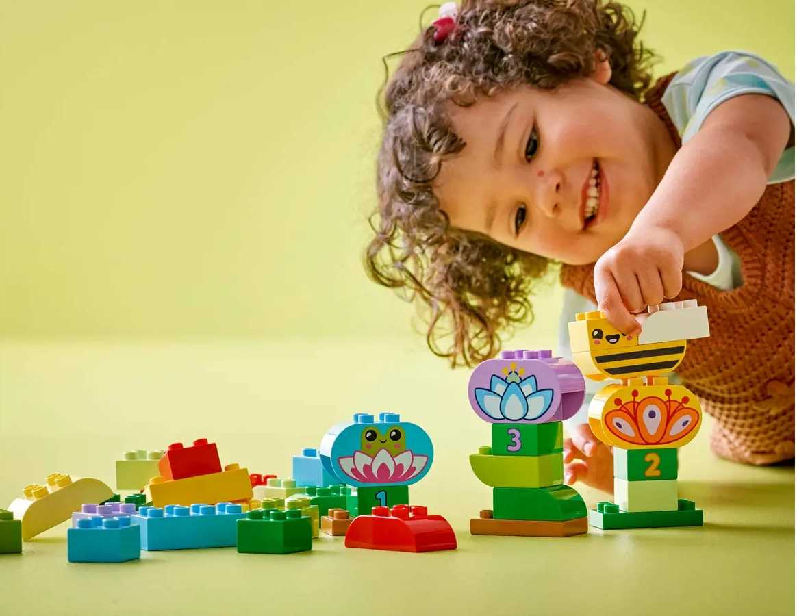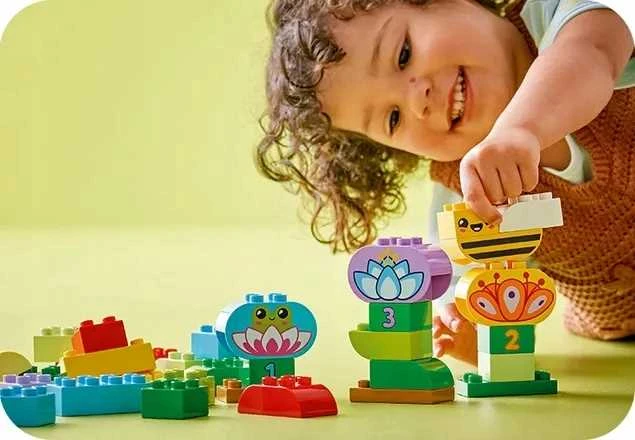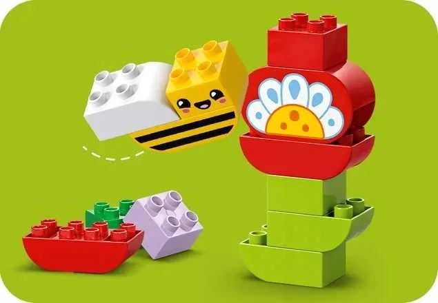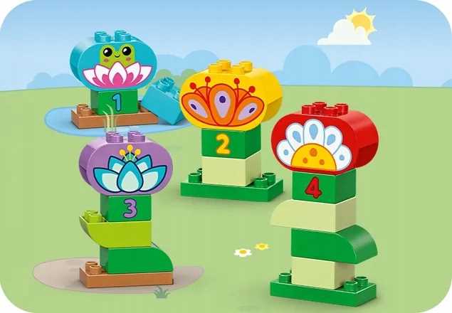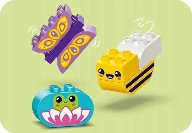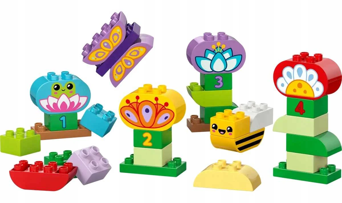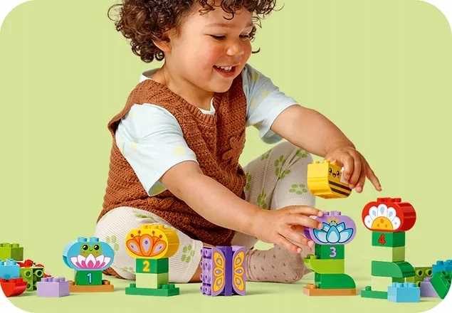 LEGO DUPLO, kreatywny ogród, kwiaty, zestaw konstrukcyjny, edukacyjna zabawka, LEGO DUPLO Town, rozwój kreatywności, koordynacja ruchowa, kolorowe kwiaty, urocze zwierzęta, owady, wyobraźnia dzieci, otaczający świat, umiejętności językowe, umiejętności motoryczne, wytrwałość, zabawa z rodzicami, opiekunowie, wymiary zabawki, nauka liczb, liczby dla dzieci, porównywanie elementów, ogród do zbudowania, kreatywna zabawa, nauka liczenia, liczba klocków, motyl, żaba, pszczoła, dbanie o przyrodę, bezpieczeństwo zabawy, nadzór dorosłych, unisex dzieci, odpowiednie od 2 lat, LEGO Polska, certyfikaty CE, certyfikaty FSC, Planeta Ziemia, zrównoważony rozwój, opakowanie kartonowe, oryginalne opakowanie, wspólna zabawa, Warszawa, LEGO kreatywne zestawy, zabawki rozwijające.