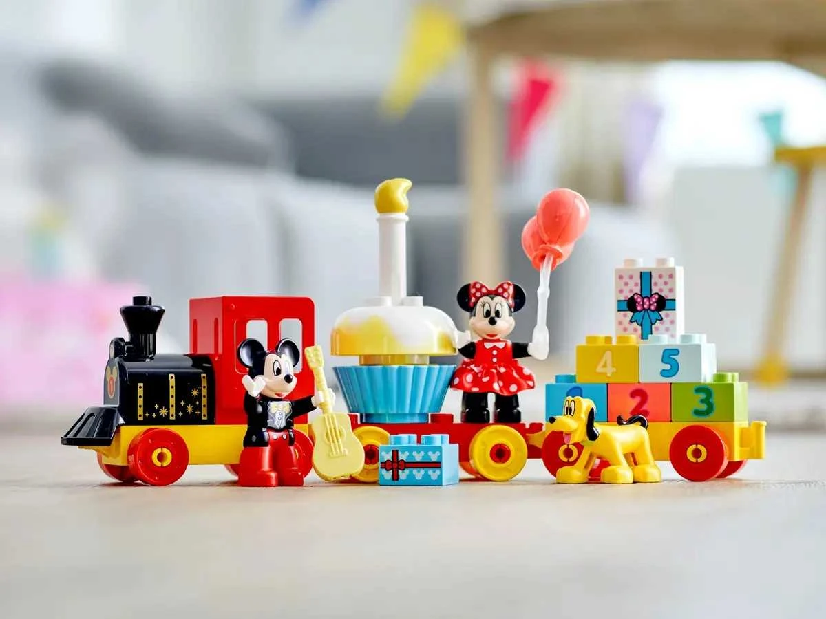 LEGO DUPLO, Urodzinowy pociąg, Myszka Miki, Myszka Minnie, przyjaciele Disneya, zestaw konstrukcyjny, rozwój umiejętności manualnych, edukacja przez zabawę, zestaw dla przedszkolaków, klocki z cyferkami, zabawkowy pociąg, dekorowanie wagonów, zabawa kreatywna, akcesoria LEGO, tort urodzinowy, akcesoria urodzinowe, nauka cyferek, umiejętności społeczne, postacie z bajek, zabawa wyobraźni, rozwój emocjonalny, prezent dla dzieci, polski dystrybutor LEGO, oryginalne opakowanie, zestaw przyjazny maluchom, LEGO Duplo dla dzieci, wyjątkowy prezent urodzinowy, zestaw edukacyjny, certyfikaty bezpieczeństwa, zestaw Miki i Minnie, kolorowe klocki LEGO, rozwój dziecka, zabawa w odgrywanie ról, profesjonalnie zaprojektowany produkt, LEGO dla maluchów, bezpieczeństwo produktu, kreatywny rozwój.