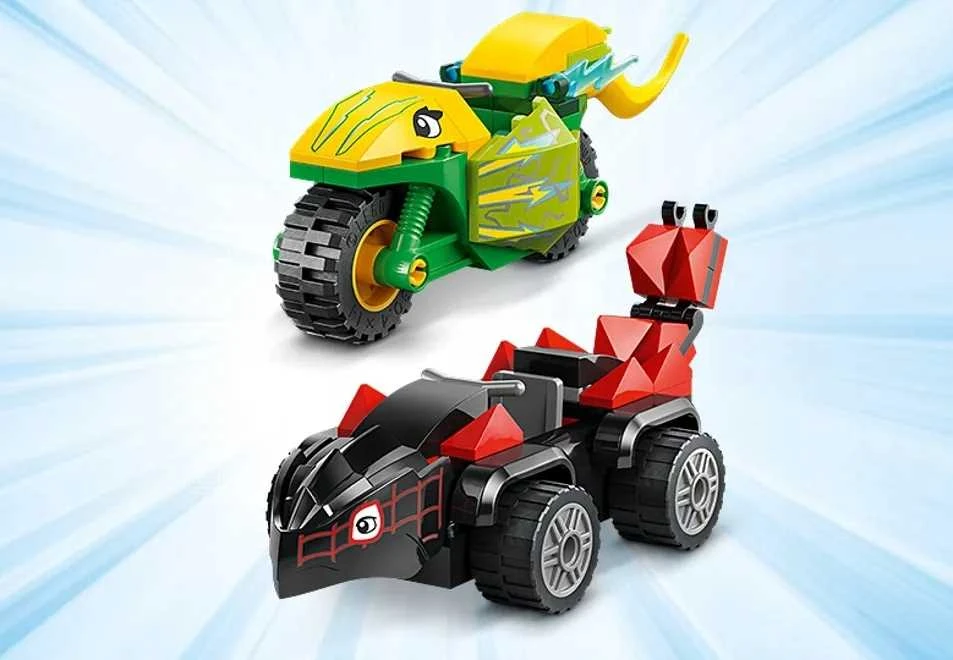 Dinopojazdy do zbudowania z minifigurkami Spina i Electro