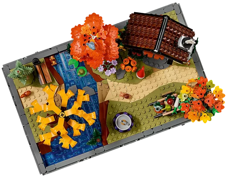 Ten zestaw sprawdzi się jako świąteczna dekoracja stołu czy kominka, rustykalny akcent we wnętrzu salonu czy gabinetu. Dzięki wymiennym elementom ogrodowym można go zaaranżować na rocznie — jesienią z intensywnymi barwami, latem z większą ilością zieleni. Kreatywność użytkownika pozwala na układanie drzew i akcesoriów w różne konfiguracje co daje modelowi uniwersalność. Świetny również dla osób, które lubią budować długie sesje konstruowania — idealny do wspólnego relaksu lub jako projekt weekendowy.