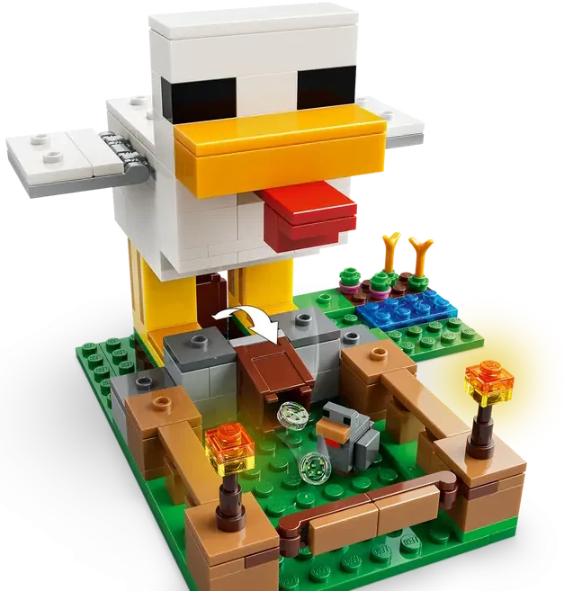 ✅ Kurnik w kształcie kurczaka z ruchomymi skrzydłami i otwieraną bramą — buduj, baw się, dekoruj.