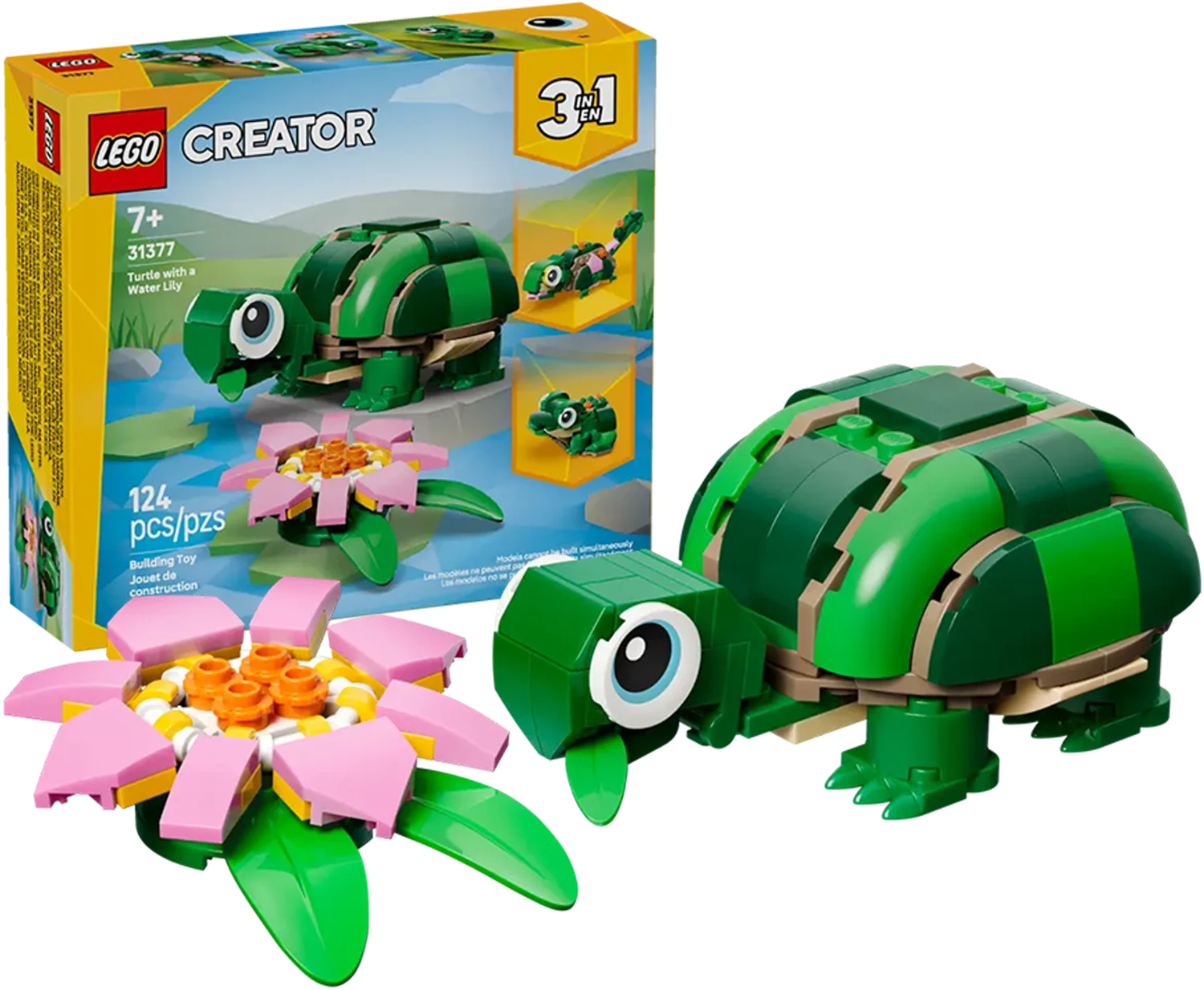 klocki LEGO, zestaw LEGO Creator, Żółw LEGO, kwiat lilii wodnej, zabawka edukacyjna, klocki konstrukcyjne, zestawy tematyczne LEGO, figurki do budowania, kreatywna zabawa, rozwój umiejętności manualnych, zabawki budowlane, projektowanie i budowa, zabawkowy żółw, zabawka z motywem lilii wodnej, rozwój wyobraźni, zestaw LEGO dla dzieci, zestaw kreatywny, prezent dla dzieci, konstruktory LEGO, budowanie i zabawa, kolekcjonerskie zestawy LEGO, zestaw 31377, klocki dla najmłodszych, LEGO dla dziecka, inspirujące konstrukcje, zabawki LEGO, edukacyjne klocki dla dzieci, kreatywność i zabawa, zestaw zabawkowy LEGO, klocki do budowy, zabawki rozwijające, zestawy LEGO do budowania, LEGO Creator 31377.