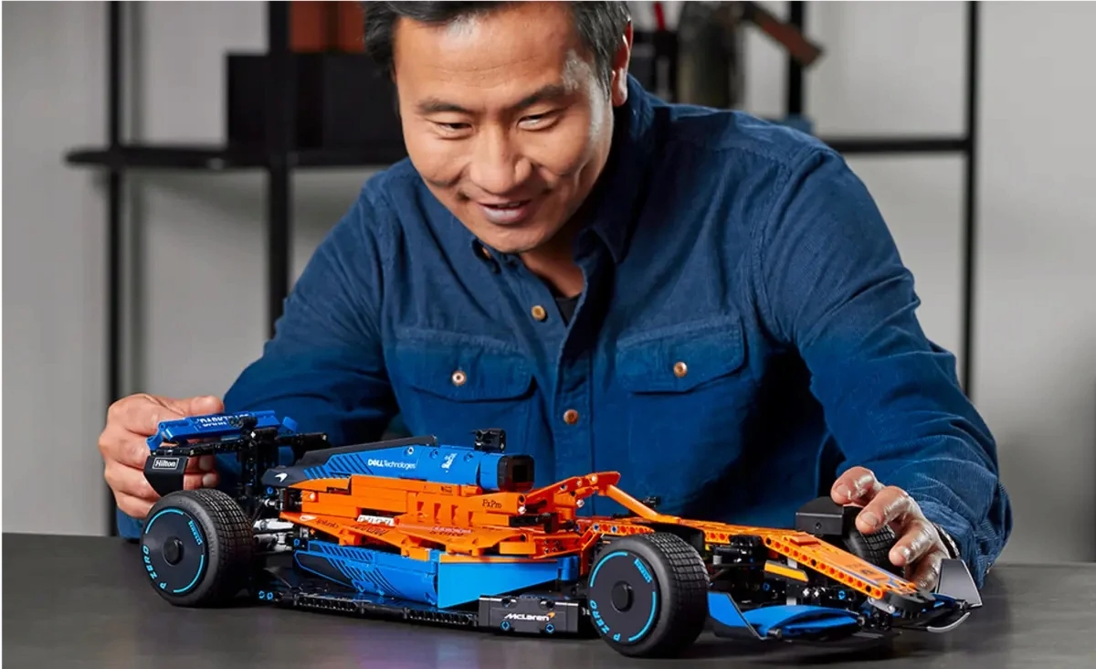 LEGO Technic, Samochód wyścigowy, McLaren Formula 1, zestaw kolekcjonerski, dla dorosłych, budowanie modeli, replika McLaren, Formuła 1, model wyścigowy, auta kolekcjonerskie, silnik V6, ruchome tłoki, układ kierowniczy, zawieszenie, mechanizm różnicowy, precyzyjne wchodzenie w zakręty, projekt konstrukcyjny, naklejki sponsorów, LEGO dla dorosłych, LEGO model techniczny, wysokiej jakości elementy, bezpieczeństwo LEGO, McLaren Racing, współpraca LEGO McLaren, instrukcje budowania LEGO, ozdoba kolekcjonerska, zaawansowane modele LEGO, zestaw do budowy, unikalne projekty LEGO, Bernhard Dickinson, inżynieria LEGO, samochód wyścigowy F1, precyzja wykonania, doświadczenie LEGO, zestawy LEGO Technic dla fanów, konstrukcje dla dorosłych, realistyczny model.