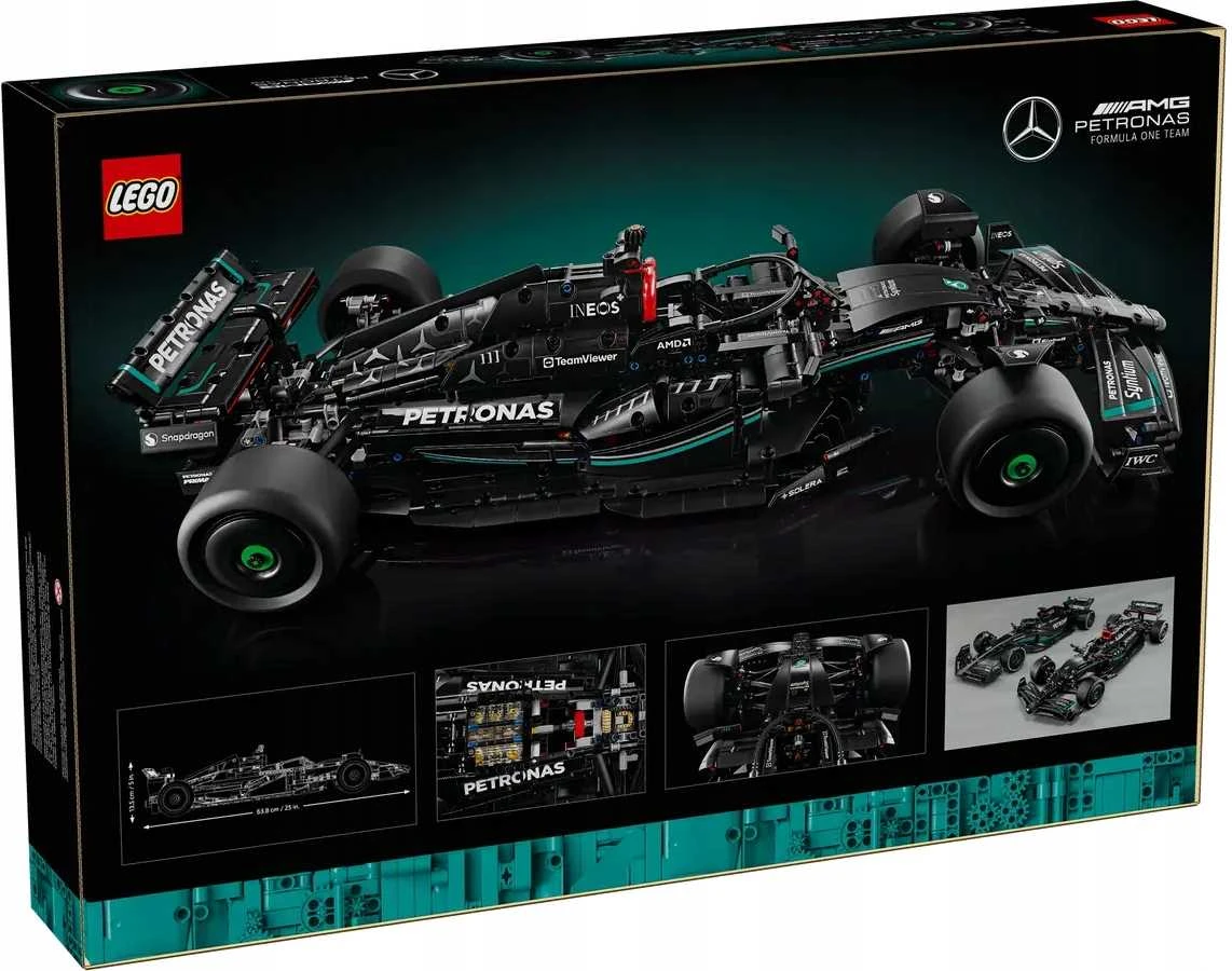 Klocki LEGO Technic, LEGO Mercedes-AMG F1 W14, model F1 2023, bolid wyścigowy, zestaw dla dorosłych, prezent dla fanów wyścigów, autentyczna kolorystyka, realistyczne detale, dyferencjał, sześciocylindrowy silnik, ruchome tłoki, otwierane skrzydło, system DRS, kierownica, układ kierowniczy, opony slick, konstrukcja LEGO, model samochodu, budować i eksponować, zabawka kolekcjonerska, sport motorowy, ambitne projekty, LEGO dla dorosłych, oryginalne opakowanie, plastikowe klocki, zestaw 1642-elementowy, LEGO Polska, LEGO Technic Polska, bezpieczne materiały, certyfikat CE, wysokiej jakości klocki, model do składania, zawieszenie samochodu, wyścigi samochodowe, F1, inspiracja F1, profesjonalny zestaw LEGO, unikalne doświadczenie budowlane.