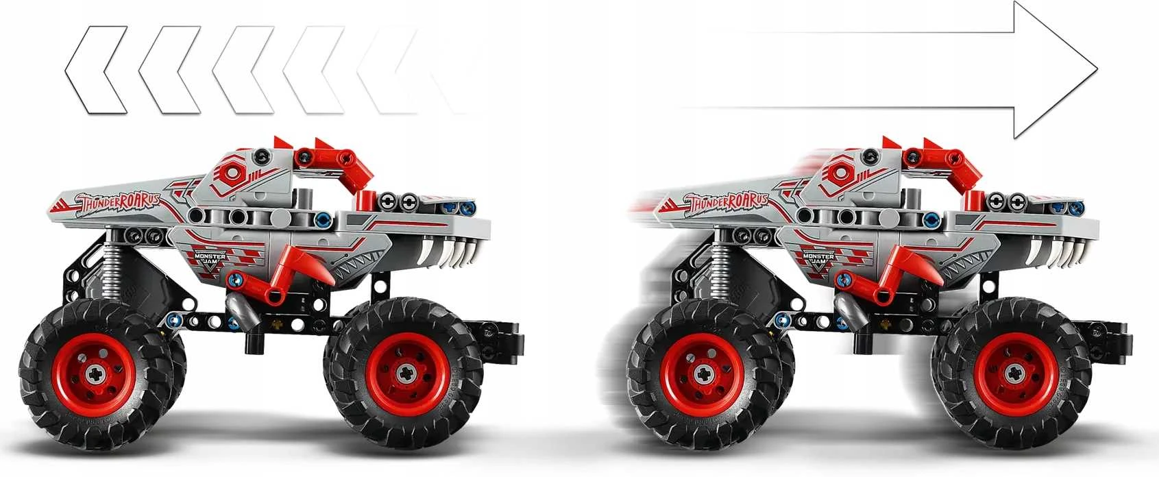 LEGO, LEGO Technic, Monster Jam, ThunderROARus, zabawka, dzieci, zestaw konstrukcyjny, pojazd, model, dinozaury, monster truck, napęd pull-back, kreatywność, rozwój umiejętności, zabawa, edukacja, inżynieria, budowanie, konstrukcja, wyzwanie, prezent, chłopcy, dziewczynki, unisex, bezpieczeństwo, odpowiedni wiek, certyfikaty, CE, FSC, jakość, plastik, trwałość, rozrywka, akrobacje, detale, design, skala, kolce, łuski, zęby, realistyczny wygląd, powrót do szkoły, święta, urodziny, prezent dla dziecka, Warszawa, LEGO Polska, interaktywność, zręczność, zabawa na świeżym powietrzu, emocje, manewry, innowacyjność, przystępna cena, dostępność, pomysłowość, rozwijanie wyobraźni, edukacyjne walory zabawy, przygoda, fan LEGO, fan Monster Trucks, kolekcjoner, miniatura, wyścigi, ekstremalne sztuczki, efektywny napęd, zabawka z przekładką, zestaw startowy, inspiracja, motoryka, motyw samochodowy, oryginalne opakowanie.