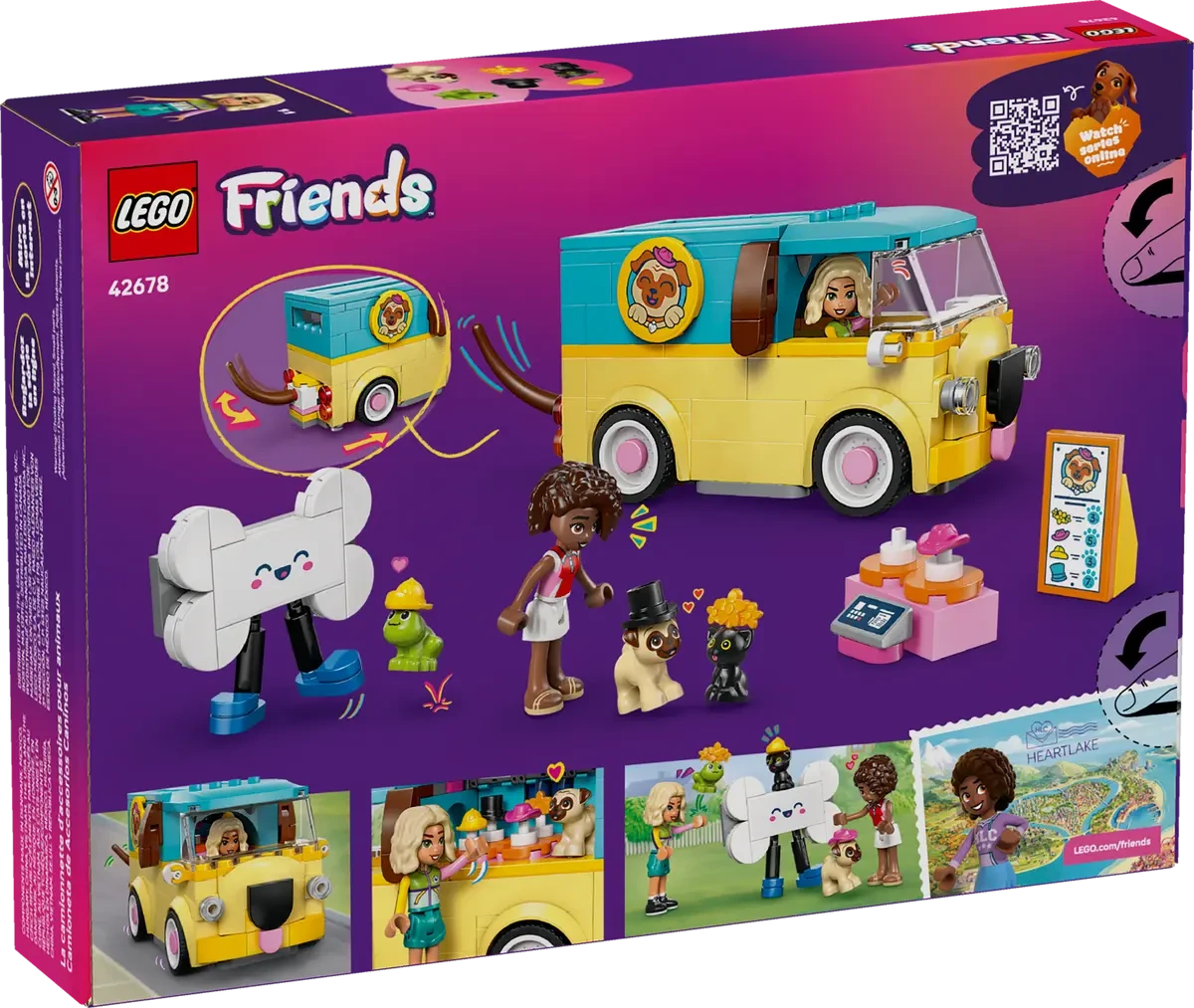 Zestaw LEGO Friends 42678 idealnie pasuje do dnia pełnego zabawy w domu, podczas spotkań z przyjaciółmi lub na prezent dla dziecka kochającego zwierzęta. Świetny sposób na zachęcenie do twórczych scenariuszy – klinika weterynaryjna, salon pielęgnacji czy podróż furgonetką. Doskonały również do kolekcjonowania i rozszerzania świata LEGO Friends.
