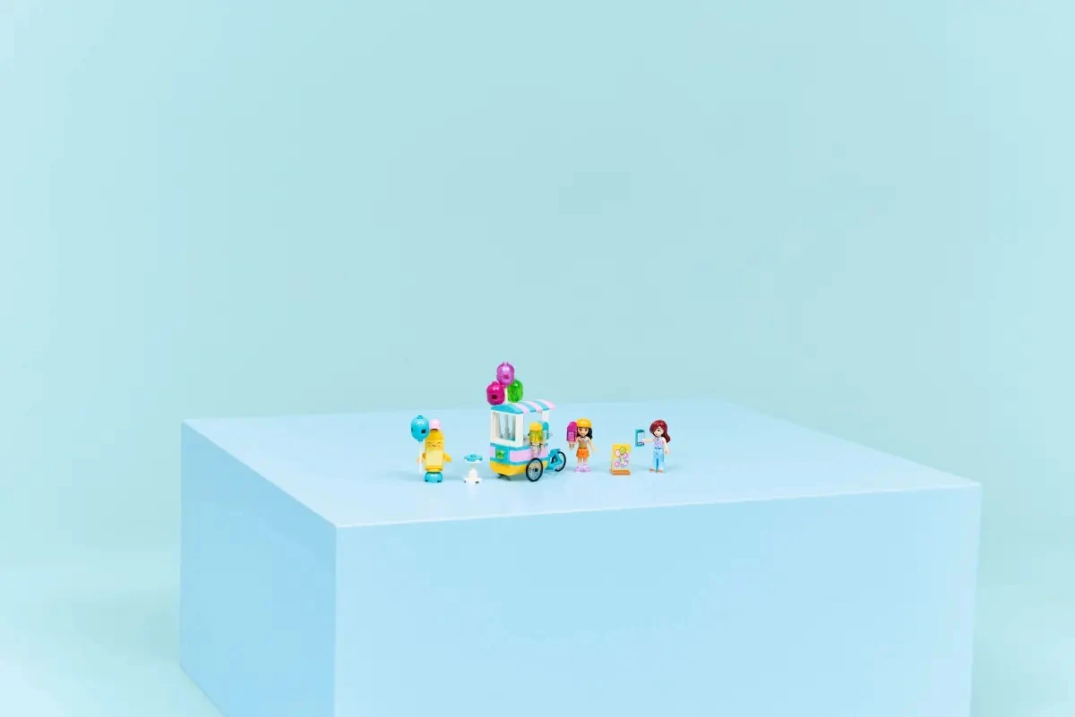 Zestaw LEGO Friends Stoisko z lodami i balonami doskonale sprawdzi się podczas wspólnej zabawy rodzeństwa lub przyjaciół — dzieci mogą stworzyć własną oczekującą kolejkę klientów, dekorować stoisko balonami, przygotowywać lodowe smakołyki i obsługiwać stół z przyjacielem. W scenariuszach pojawia się zarówno mobilność dzięki rowerowi, jak i relaks przy stole — idealne tło do zabawy w parku, na podwórku lub we własnym pokoju. Świetny jako element większego miasta Heartlake City, uzupełnienie innych zestawów tematycznych LEGO Friends.