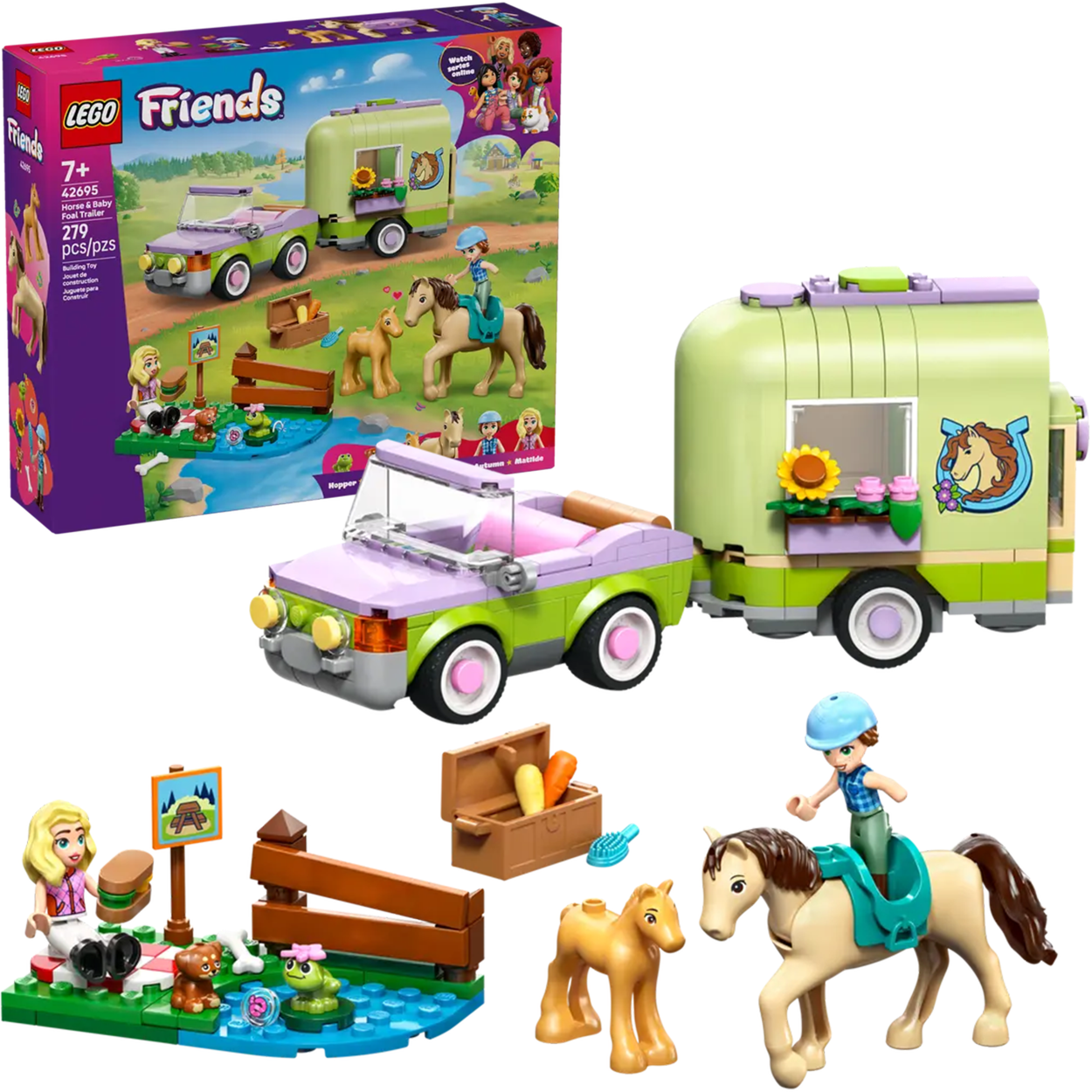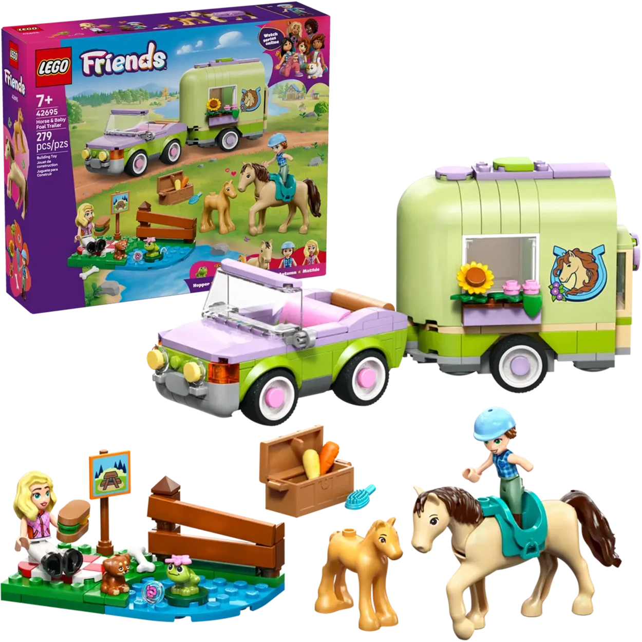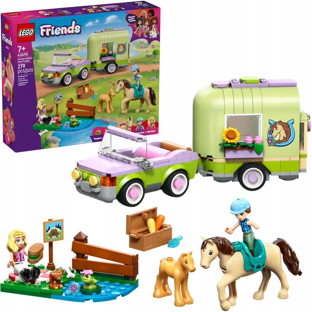 - Nazwa zestawu LEGO Friends 42695 Przyczepa z koniem i źrebaczkiem