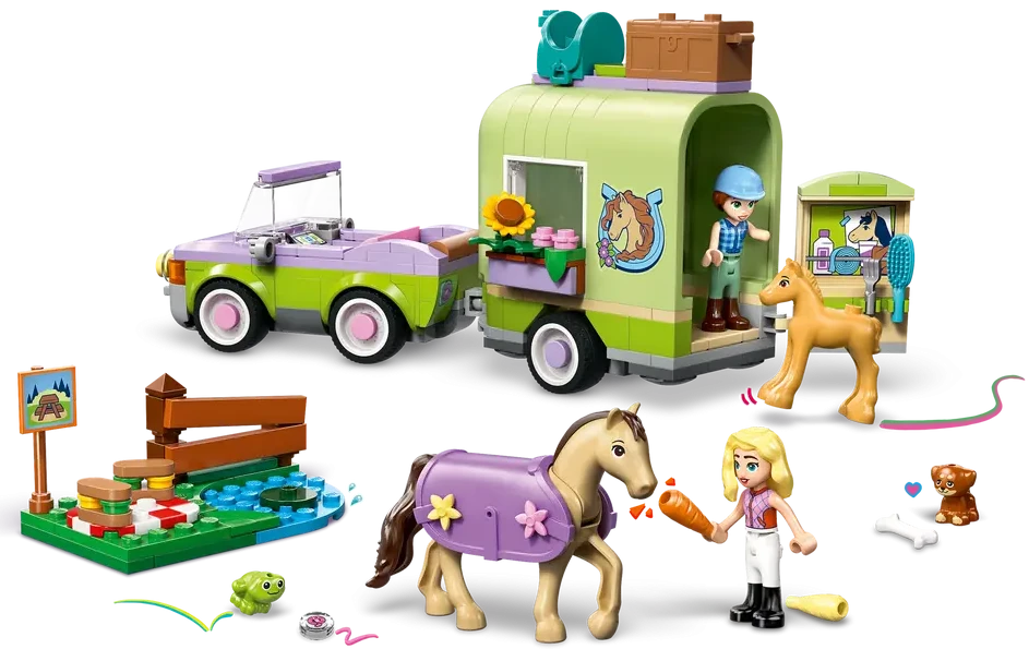 LEGO Friends, Przyczepa z koniem, źrebaczek, zabawki konstrukcyjne, dla dzieci, kreatywne zestawy, zestaw do budowania, dziewczynki, LEGO dla dzieci, edukacyjna zabawka, prezent dla miłośników koni, rozwój umiejętności, wyobraźnia, zestawy LEGO Friends, interaktywna zabawa, seria Friends LEGO, zestaw z przyczepą, figurki koni, konik, źrebak, kreatywna zabawa, budowanie, klasyczne LEGO, zestaw do odgrywania scen, podróż z koniem, klocki LEGO, zestaw konstrukcyjny, zabawki dla dziewcząt, kreatywne konstrukcje, świat LEGO Friends, zestaw edukacyjny, rozwijanie wyobraźni, LEGO dla dziewczynki, zestawy do kolekcjonowania, pasjonujący świat klocków LEGO, prezent dla dzieci, LEGO dziewczynki, konstrukcja, rozwój dzieci, zabawki edukacyjne.