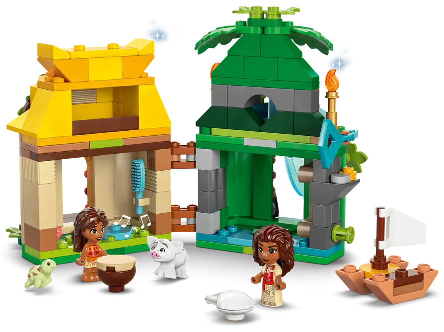 ✅ Zestaw zawiera dwustronny model domu i wyspy z kluczem, mikrolaleczki LEGO® ǀ Disney Vaiany i jej siostry Simei, a także figurkę LEGO ǀ Disney Pui