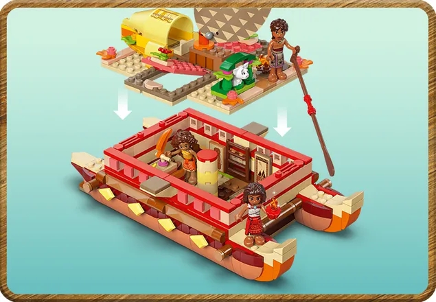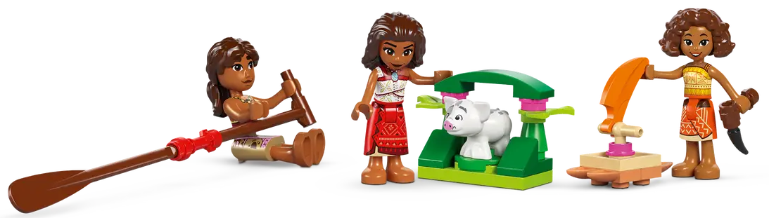 ✅ W zestawie jest mnóstwo akcesoriów inspirujących do opowiadania historii, w tym minilaleczki LEGO ǀ Disney Vaiany, budowniczej łodzi Loto i wioślarza Moniego (zapalonego gawędziarza) oraz figurka świnki Pui LEGO ǀ Disney.
