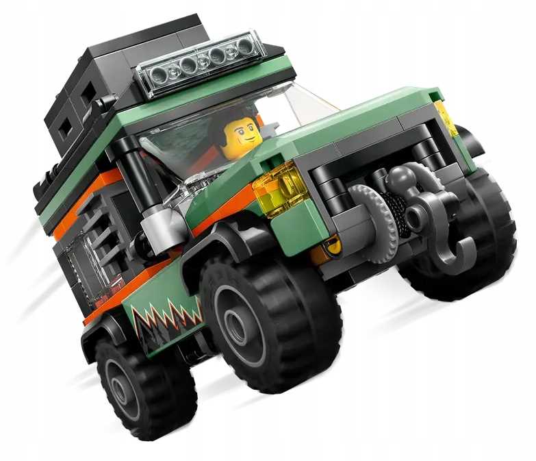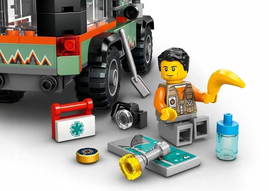 klocki LEGO, LEGO City, górska ciężarówka, terenówka 4x4, zestaw do budowania, zabawa kreatywna, przygody w górach, dzieci powyżej 6 lat, minifigurki LEGO, akcesoria do zabawy, model samochodu terenowego, edukacyjne zabawki, prezent dla dzieci, zestawy LEGO, pojazdy LEGO, oryginalny produkt LEGO, klocki do budowania, zabawka dla chłopców i dziewczynek, innowacyjne funkcje, wytrzymała zabawka, interaktywna edukacja, bezpieczeństwo dzieci, zawartość zestawu, certyfikaty CE, kreatywna zabawa, przygoda, LEGO Builder, aplikacja LEGO, instrukcje budowania, narzędzia do eksploracji, schowki na narzędzia, aparat fotograficzny, mapa, kompas, minifigurka poszukiwacza przygód, rola w zabawie, pokonywanie przeszkód, zabawki dla dzieci, LEGO Polska, fun z LEGO, wciągarka, komin wydechowy, dach z narzędziami, odkrywanie nowych miejsc, wyzwania, długość 13 cm, szerokość 6 cm, wysokość 7 cm, strome zbocza, naprawa silnika, wytrzymałe opony