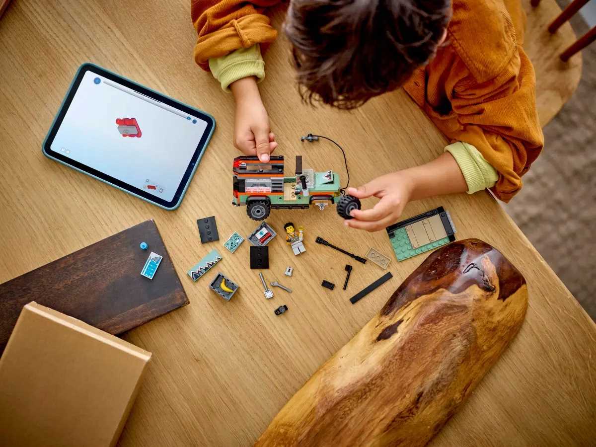 ✅ Ten model terenówki zawiera drukowane instrukcje budowania oraz cyfrowe instrukcje w aplikacji LEGO Builder. Dzieci mogą w niej powiększać i obracać modele w 3D, śledzić postępy oraz zapisywać zestawy.