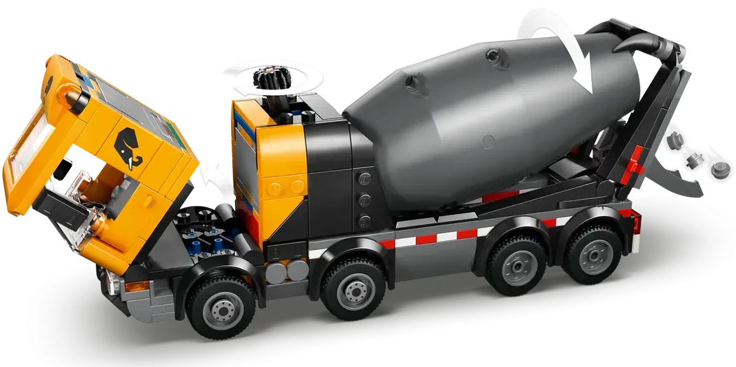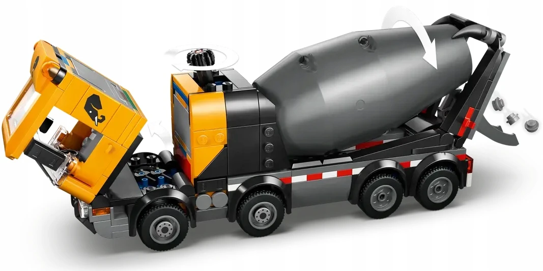 Zestaw LEGO City 60478 Betoniarka zawiera szczegółową betoniarkę z obracającym się bębnem, realistyczne koła z bieżnikiem terenowym oraz minifigurkę kierowcy. Kolorystyka w odcieniach pomarańczowego i białego dodaje zestawowi charakteru, a funkcjonalność umożliwia przechylanie bębna i wylewanie betonu – co pobudza wyobraźnię i kreatywność.