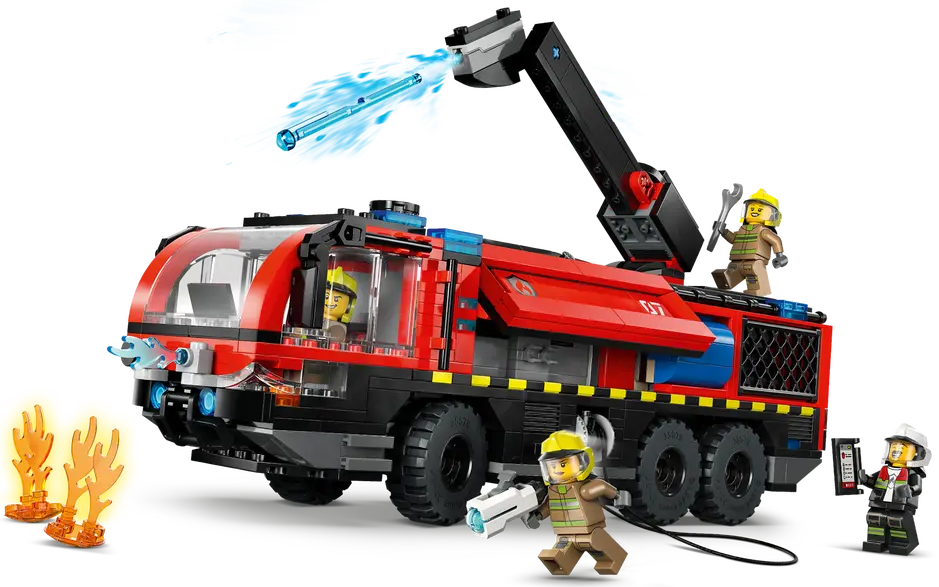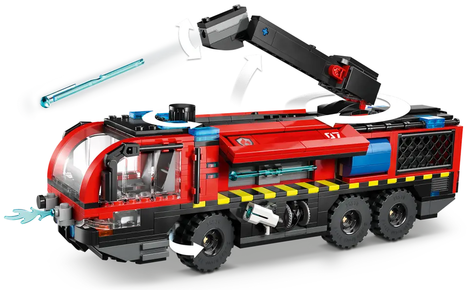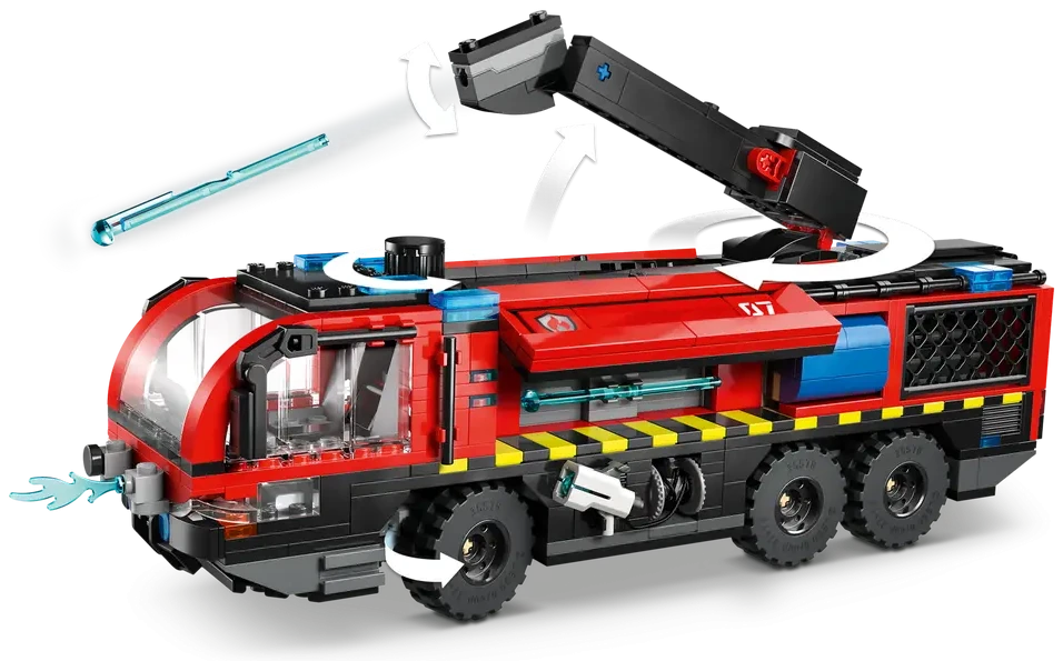 ✅ Lotniskowy wóz strażacki – główny pojazd z działkiem wodnym.