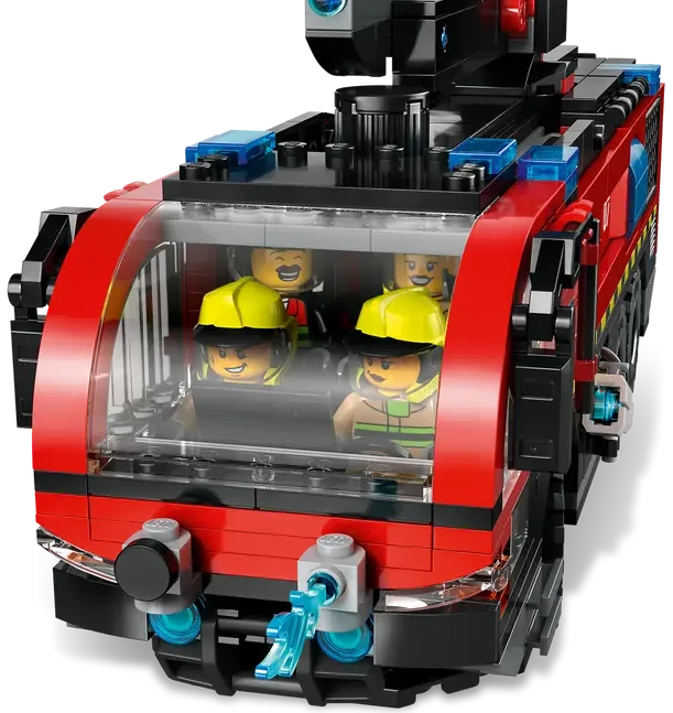 ✅ Kabina strażaka – miejsce dla minifigurki, kierownica i panele sterujące.