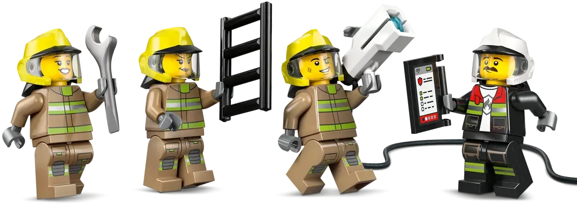 ✅ Minifigurka strażaka – z akcesoriami ochronnymi.