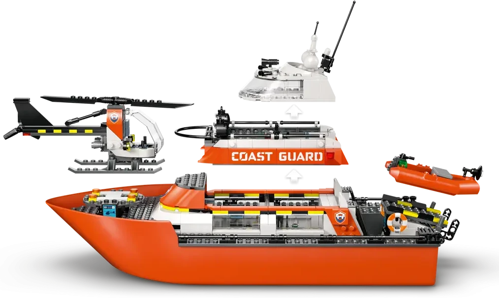 Doskonale sprawdzi się jako zabawka w domu, pozwalając dzieciom stworzyć morskie scenariusze ratunkowe i operacje powietrzne. Idealny do wspólnej zabawy rodzeństwa lub przyjaciół, budowania scenek na podłodze czy biurku. Świetny też jako element wystroju pokoju fana LEGO lub straży przybrzeżnej – efektowny model, który można eksponować. Użyteczny także w edukacji – w szkole, przedszkolu lub warsztatach – do nauki poprzez zabawę.
