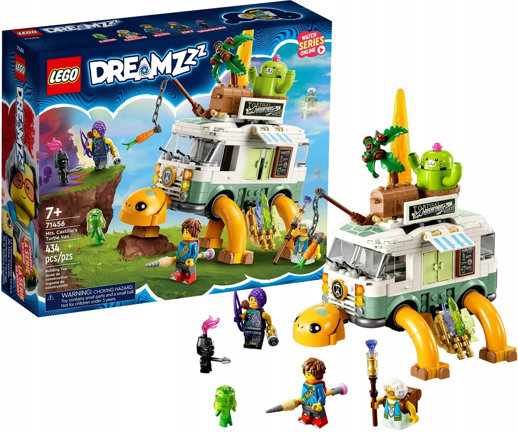 LEGO DREAMZzz, Żółwia Furgonetka, Pani Castillo, zestaw klocków, kreatywna zabawa, rozwój dzieci, marzenia, pojazd LEGO, budowanie, serial DREAMZzz, Mateo i Zoey, minifigurki, furgonetka do zbudowania, dwa tryby, tryb imprezowy, ruchome drzewo, wirujący kaktus, skrzynia ze skarbami, tryb latającej łodzi podwodnej, rakieta, ruchomy peryskop, Koci Kaktus, dla dzieci powyżej 7 lat, edukacyjna zabawka, klocki LEGO, oryginalne opakowanie, motor skills, kreatywne myślenie, projektowanie, certyfikat CE, LEGO Polska, bezpieczna zabawa, instrukcja krok po kroku, łatwe budowanie, kompatybilność z innymi zestawami, rozszerzona zabawa, marka LEGO, dzieci 7+, dziewczynki i chłopcy, nauka przez zabawę, modułowa konstrukcja, serial animowany.