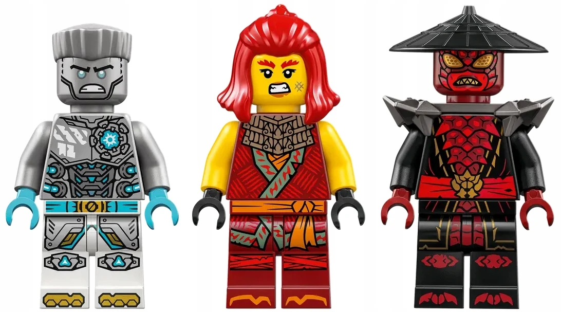 ✅ Ten zestaw LEGO zawiera trzy minifigurki postaci NINJAGO: Zane’a z dwoma shurikenami, Wyldfyre z kryształową kataną i Drixa, Władcę Roju z Zakazanej Piątki, z dwoma sierpami.