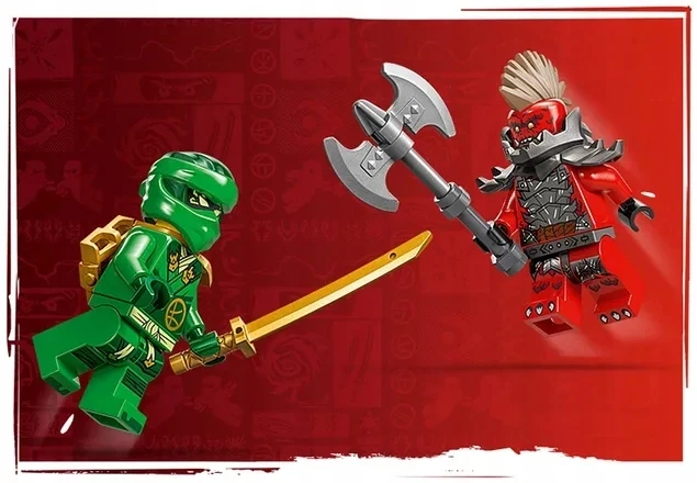 ➡️ Lloyd uzbrojony w złotą katanę i złowrogi dragoński zwiadowca z toporem, dzięki którym dzieci mogą cieszyć się ekscytującą akcją ninja