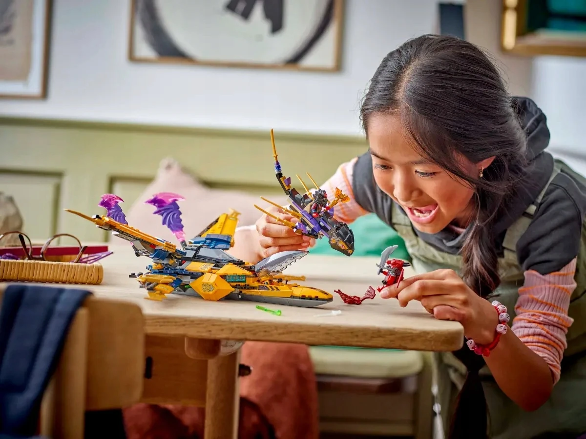 ✅ Dzięki zestawowi Ras i burzowy superodrzutowiec Arina ośmiolatki i starsze dzieci mogą odgrywać podniebne sceny z trzeciego sezonu serialu NINJAGO® Powstanie Smoków