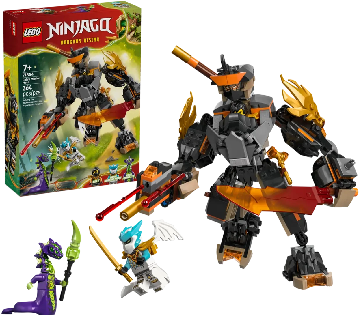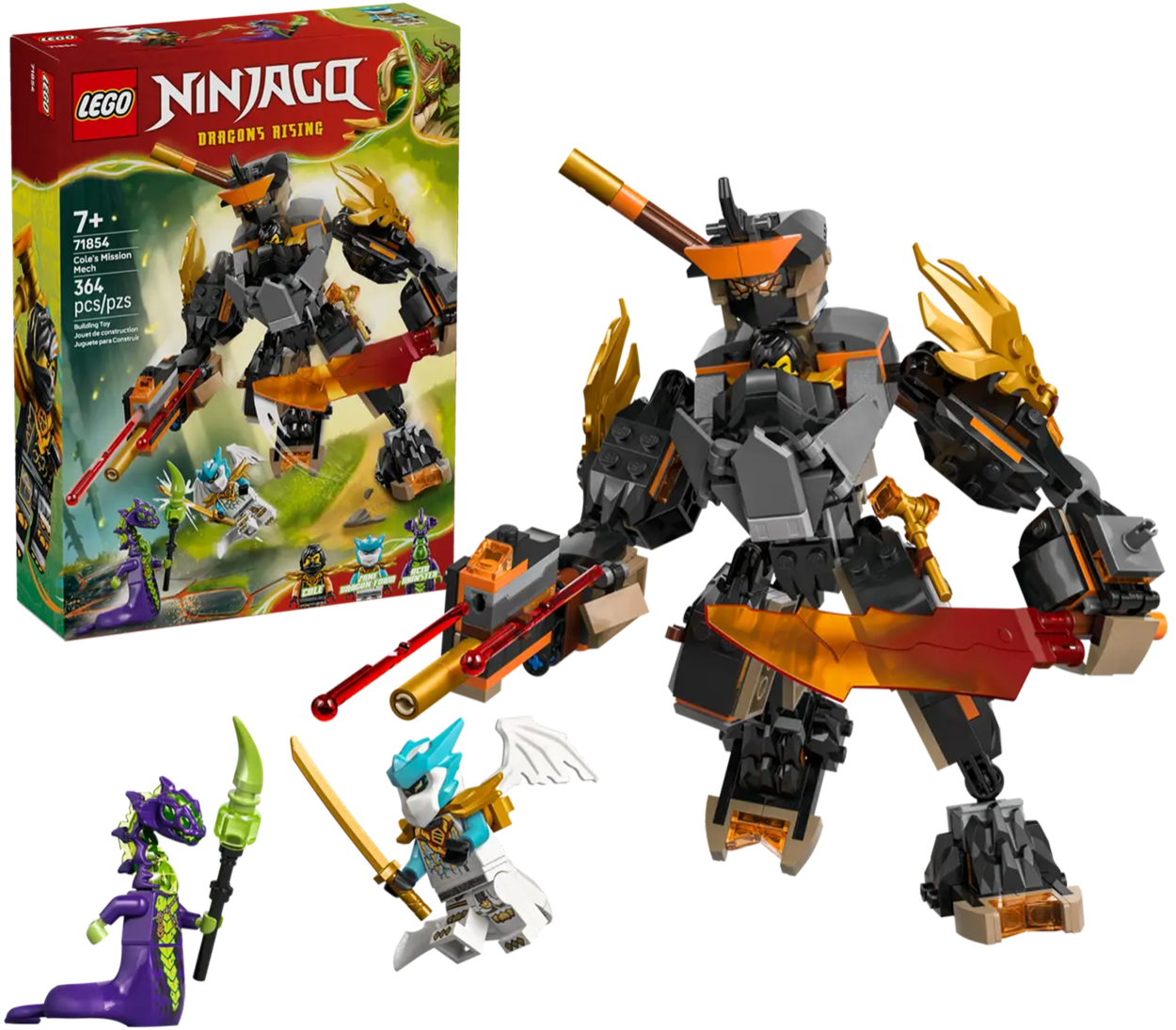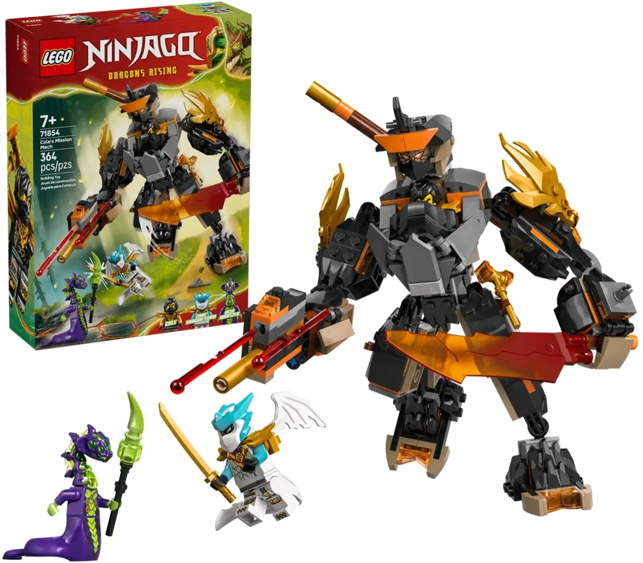 Zestaw LEGO Ninjago 71854 to epicki mech, w którym Cole oraz Zane łączą siły w smoczej zbroi. Potężna maszyna futurystyczna łączy elementy klasycznego mecha i mitologicznego smoka. Solidne elementy, dynamiczny wygląd i bogata kolorystyka – między czernią, szarościami i metalicznymi odcieniami – sprawiają, że zestaw zachwyca każdego fana ninjago i budowania. Dzięki licznym ruchomym częściom mech oferuje wyjątkowe możliwości zabawy i eksponowania.
