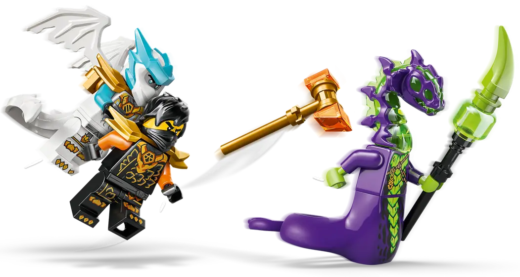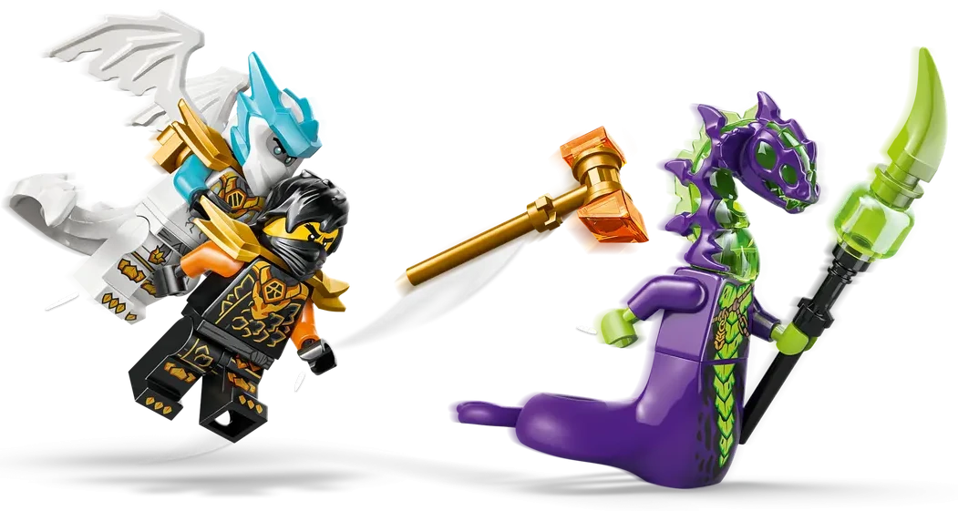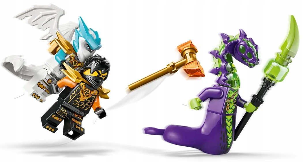 ✅ Figurki: Cole i Zane w pełnej smoczej zbroi z dodatkowymi akcesoriami.