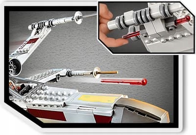 ✅ Fani będą zachwyceni realistycznymi detalami, wśród których jest otwierany kokpit dla minifigurki LEGO z miejscem dla R2-D2 z tyłu, skrzydła z przyciskiem do ustawiania w położeniu bojowym, wciągane podwozie oraz sprężynowe działka.
