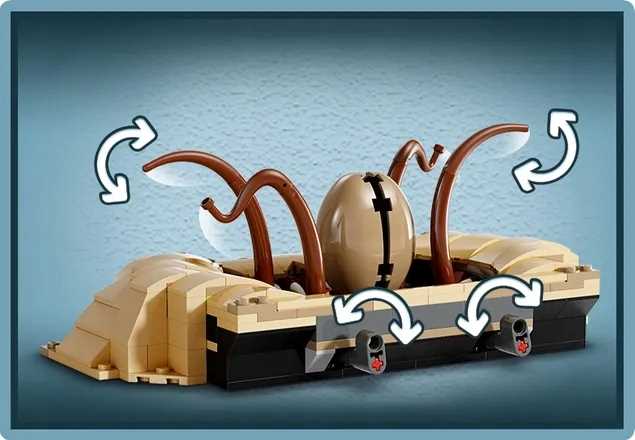✅W jamie znajdują się dźwignie umożliwiające poruszanie mackami sarlacca, a w jego paszczy jest miejsce na minifigurkę LEGO.