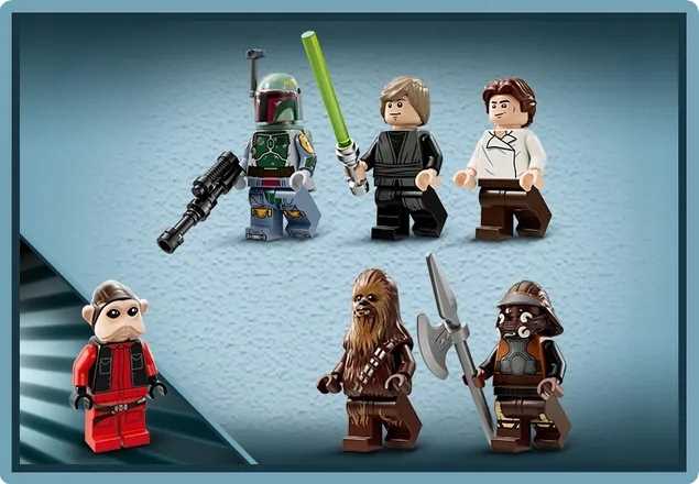 ✅Zawiera sześć minifigurek LEGO, w tym Luke’a Skywalkera, Hana Solo, Chewbaccę, Lando Calrissiana i Bobę Fetta, a także szczegółowe akcesoria.