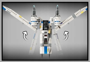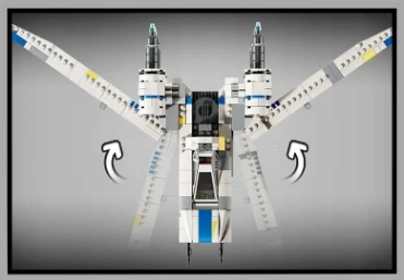 ➡️ Ten zestaw LEGO® Star Wars™ z myśliwcem do zbudowania ma funkcję podnoszonych skrzydeł, dzięki której można zmienić ich pozycję w trybie lądowania lub lotu w kształcie litery „V”