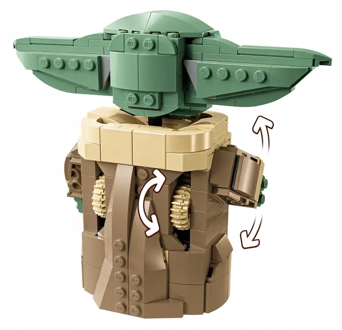 ✅ Figurka Grogu do zbudowania ma ręce, którymi można poruszać za pomocą pokrętła, oraz ruchomą głowę i uszy.