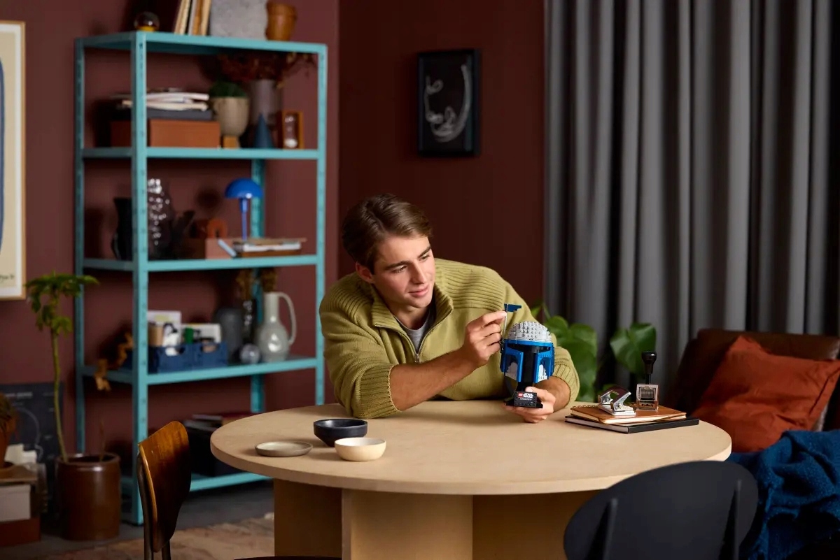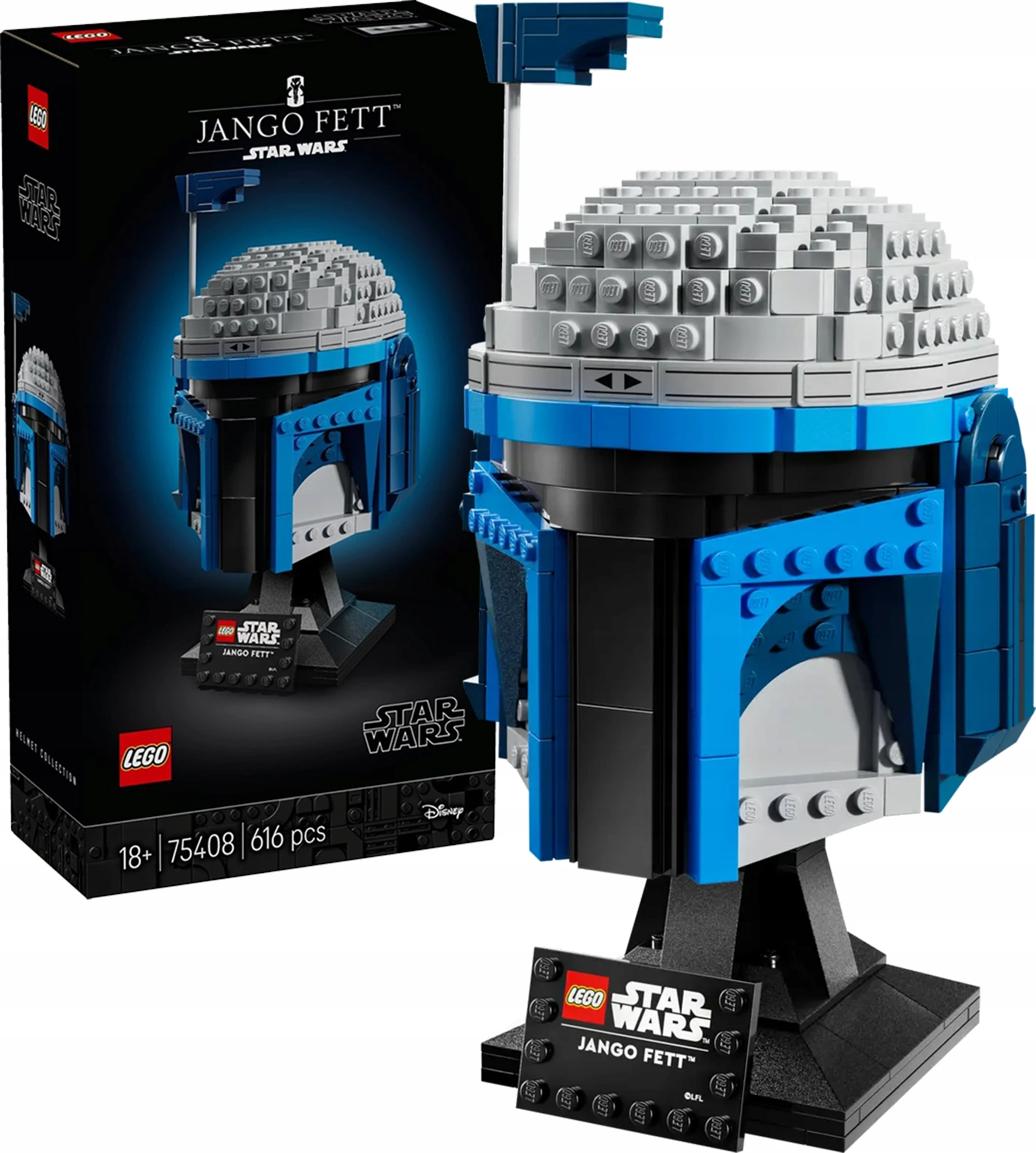 LEGO Star Wars, Hełm Jango Fetta, zestaw dla dorosłych, kreatywna zabawa, budowanie modeli, kolekcjonerski hełm, fan Gwiezdnych Wojen, dekoracja do domu, zestaw LEGO Star Wars, oddanie hołdu postaci Jango Fetta, model z filmu Atak klonów, unikalne detale, regulowany dalmierz, doświadczony konstruktor, początkujący miłośnik LEGO, relaksujące hobby, aplikacja LEGO Builder, cyfrowy model 3D, śledzenie postępów, galaktyka Star Wars, certyfikaty CE FSC, konstrukcja i ekspozycja, prezent dla fana, satysfakcjonujący projekt, ozdoba z tabliczką, doświadczenie budowania, zgodność z wiekiem powyżej 18 lat, bezpieczeństwo i nadzór dorosłych, mandaloriański łowca nagród, oryginalne opakowanie, dane produktowe GPSR, LEGO Polska.