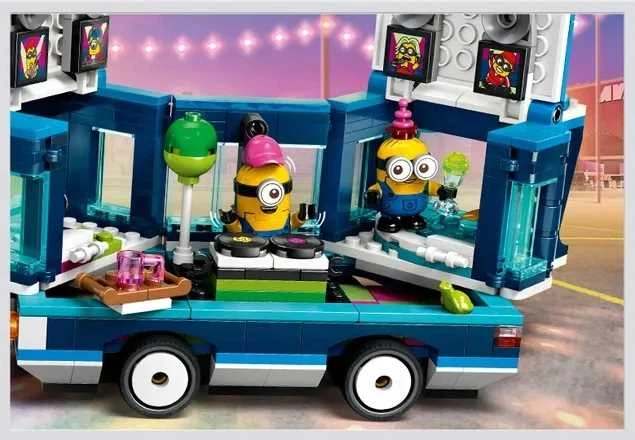 LEGO Minionki, Imprezowy autobus minionków, zestaw LEGO 75581, zabawkowy autobus, film Despicable Me 4, Minionki, Phil, Mel, Dave, Mega Minion Gus, zabawka budowlana LEGO, zestaw dla dzieci 7+, klocki LEGO Minionki, kreatywna zabawa, zabawkowy pojazd, autobus-kabriolet, akcesoria imprezowe, prezent urodzinowy dla dzieci, Despicable Me, Imprezowy Autobus, filmowa zabawka LEGO, pojazd z Minionkami, zabawka edukacyjna, odgrywanie ról, różne figurki minionków, góra Minionków, zabawki dla chłopców i dziewczynek, dziecięca zabawa, Imprezowy autobus LEGO, jaśkliwe kolory LEGO, zestaw do budowania, Minionki Illumination, Minionki 4, LEGO akcje imprezowe, LEGO Polska, LEGO Warszawa, akcesoria LEGO Minionki, zestaw kreatywny dla dzieci, zabawki od LEGO, budowanie i zabawa w jednym, DJ i parkiet taneczny, muzyka i zabawa dla dzieci.