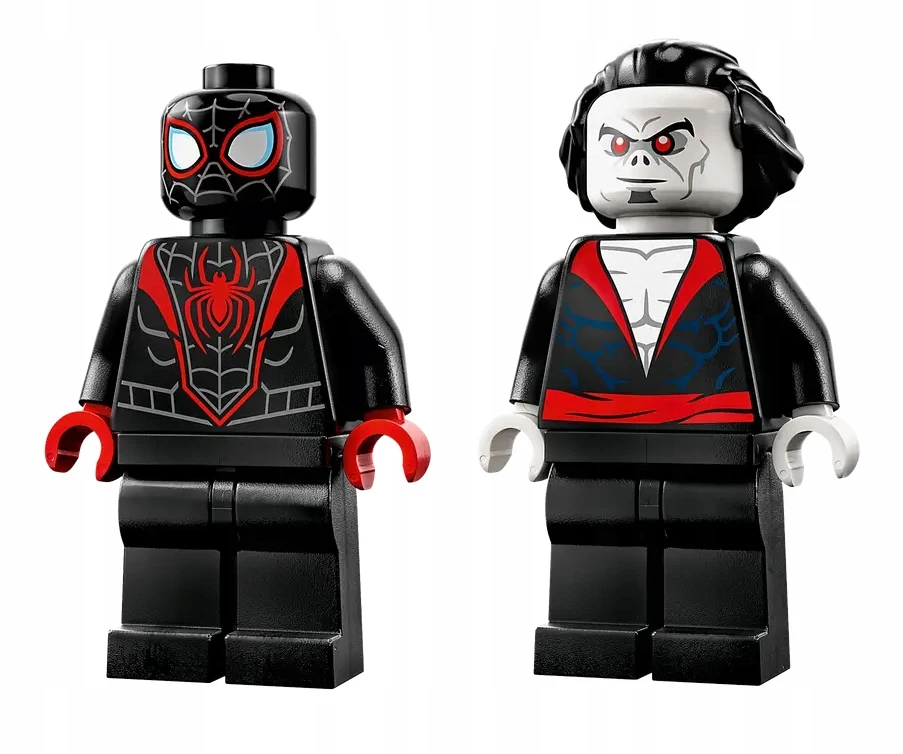 ➡️Zestaw obejmuje dwie kultowe minifigurki, Milesa Moralesa i Morbiusa, oraz szybki samochód z dwoma miotaczami klocków i dopalaczem z tyłu
