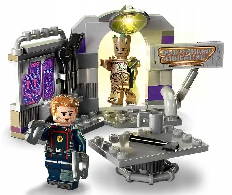➡️Zestaw zawiera dwie kultowe minifigurki, Groota i Star-Lorda, a także kwaterę do zbudowania z narzędziami, gadżetami i stołem
