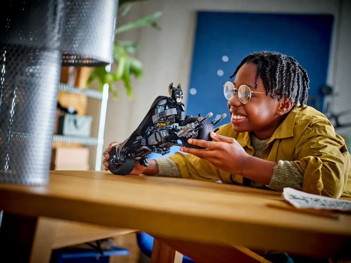 ➡️Ruchome stawy ramion, rąk, bioder i nóg pozwalają dzieciom tworzyć atrakcyjne pozy z figurką LEGO® Batman™, motocyklem i wyrzutniami klocków