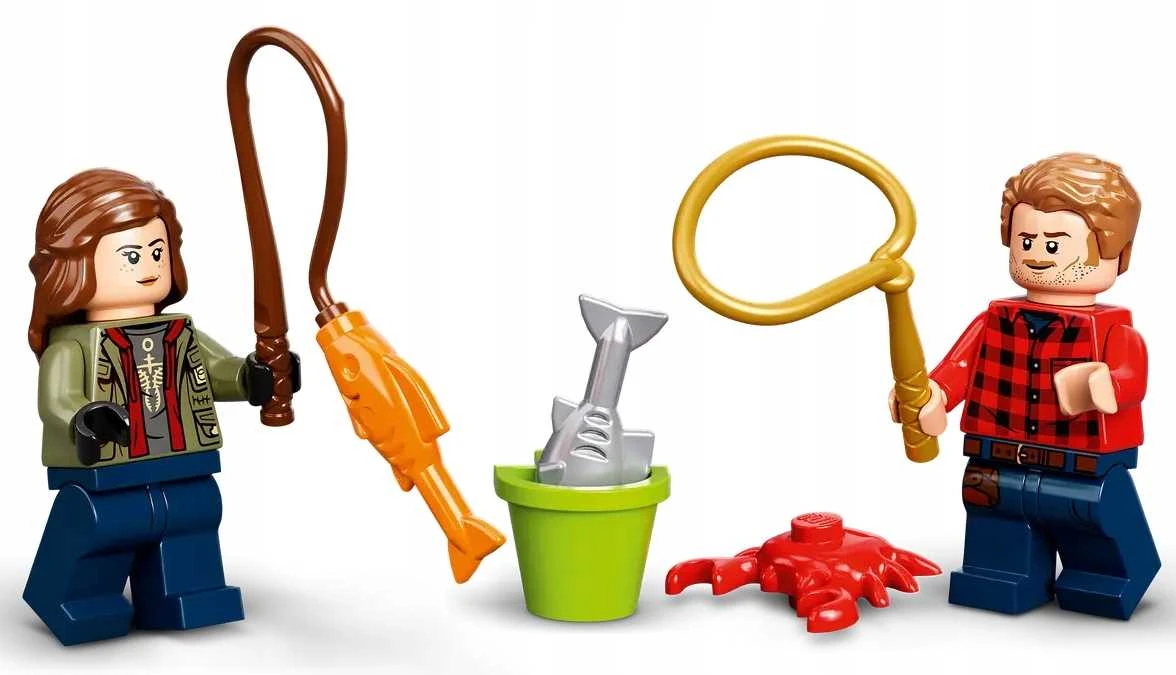 ✅Zestaw zawiera modele łazika, straganu z rybami i doku. W komplecie jest też ruchoma figurka pteranodona i dwie minifigurki z wędką i lassem, które zachęcają do kreatywnej zabawy.