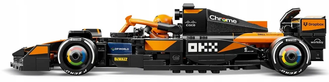 ✅ Bolid zawiera także minifigurkę kierowcy w kombinezonie zespołu McLaren i kasku, którą można umieścić w kokpicie, aby odgrywać wyścigi.