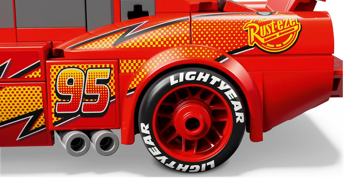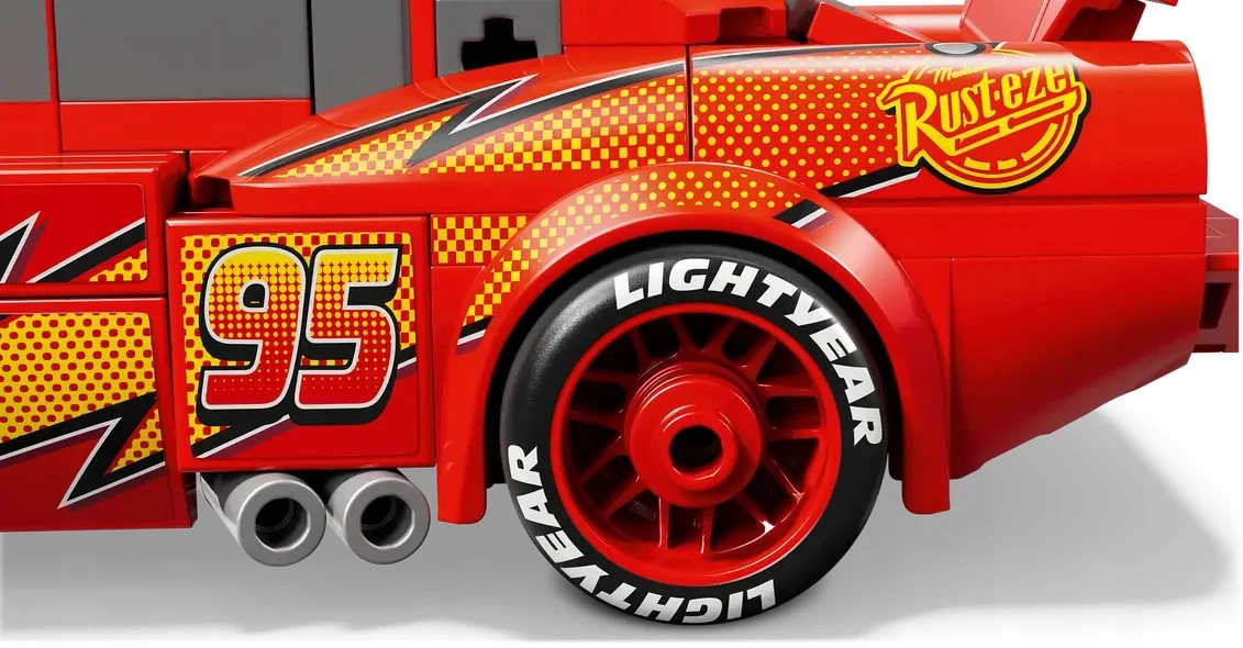 ✅ Model zawiera detale znane z wersji filmowej, w tym błyskawicę, naklejki ze światłami, numer 95, logo sponsora Rust-Eze oraz napis „Lightyear” nadrukowany na oponach