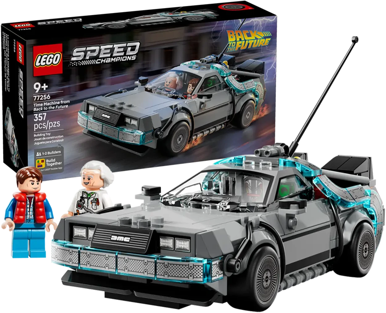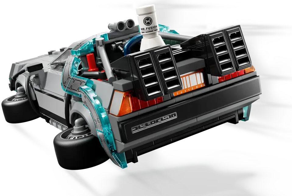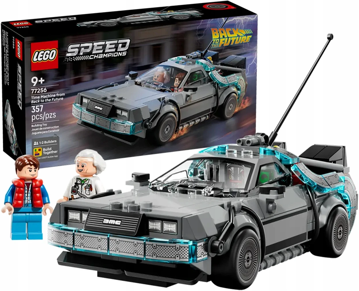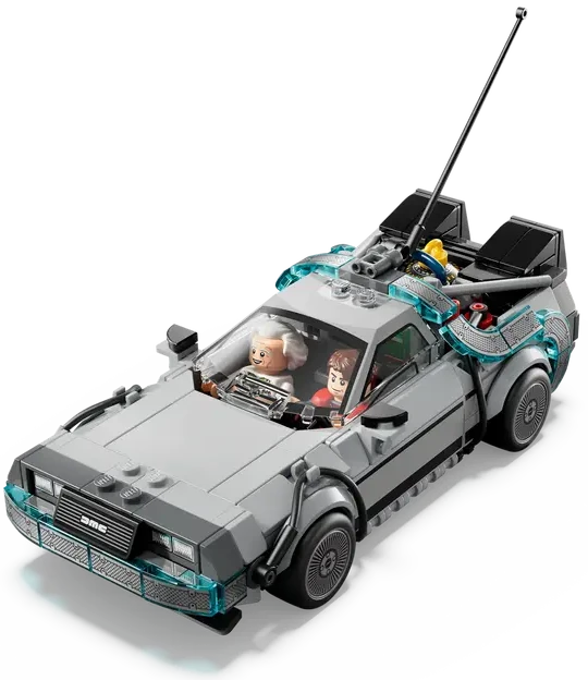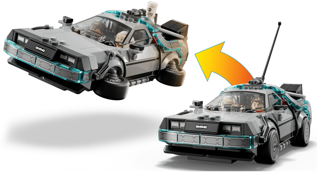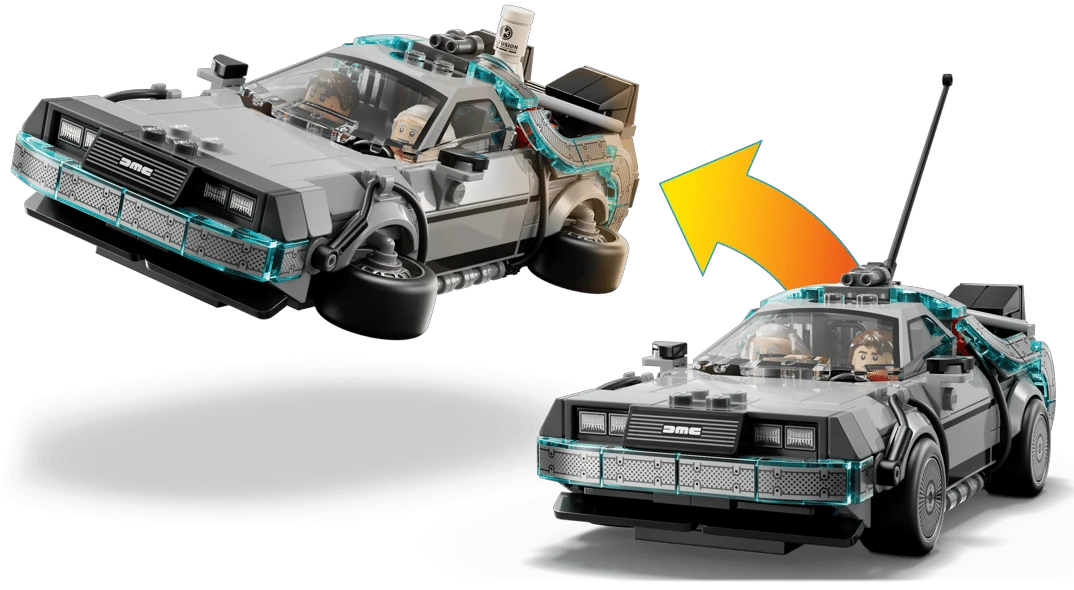 Zestaw 77256 z serii LEGO Speed Champions to wyjątkowa replika legendarnych wehikułów z kultowego filmu Powrót do Przyszłości. Znajdziesz tutaj wersję klasycznego DeLorean DMC-12 z głośnikami i latającymi felgami, jak również odjechaną DMC-12 Copernic Time Machine — wersję inspirowaną japońskim stylem, z mocnymi kolorami i pełną cyfrowych detali. Zestaw wykonany z dbałością o każdy szczegół, zachwyca niczym podróż w czasie podczas składania. To gratka dla fanów filmu, motoryzacji i kreatywnej zabawy.