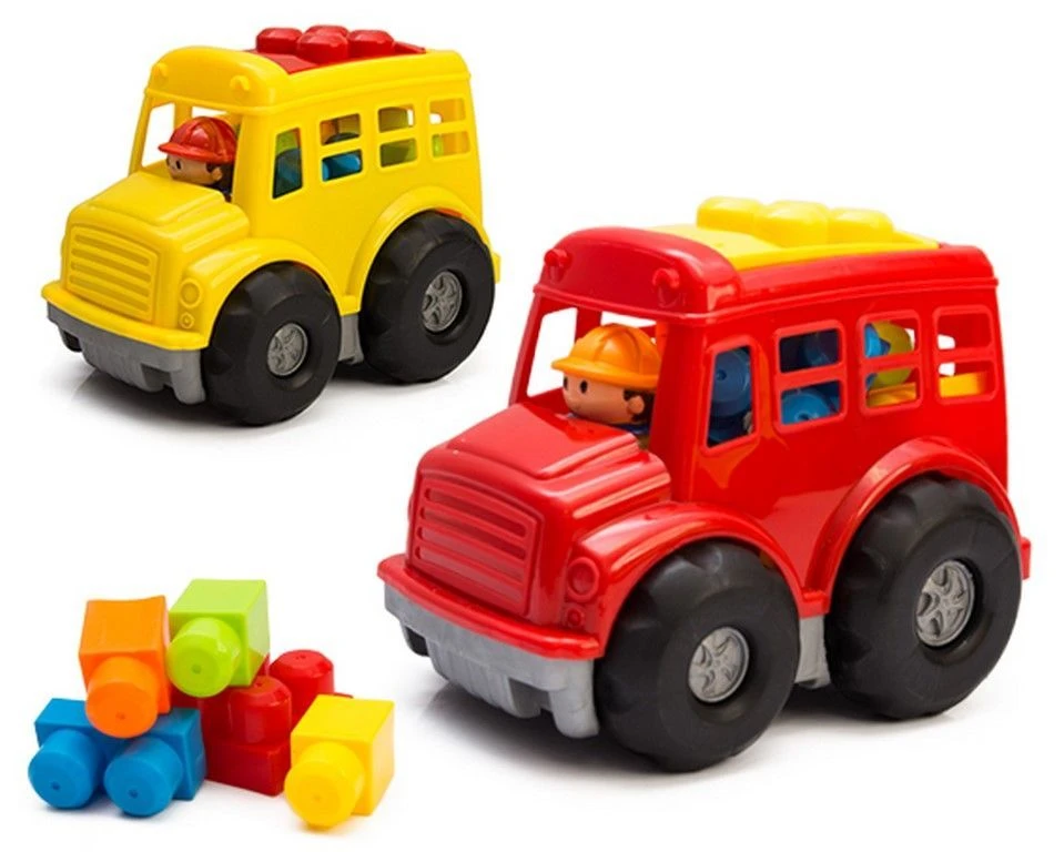 Autko z zestawem klocków - autobus czerwony
