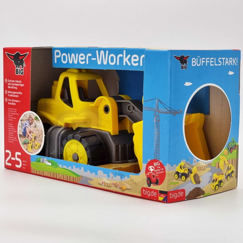 Projekt ładowarki BIG-POWER-WORKER dopasowany jest do budowy ciała małych dzieci,by mogły one łatwo pchać, wywracać lub transportować zabawkę. Szczególnym dodatkiem są wytrzymałe kółka Soft, które stanowią wyposażenie seryjne wszystkich modeli serii BIG-POWER-WORKER, które co ważne nie pozostawiają śladów na podłodze.