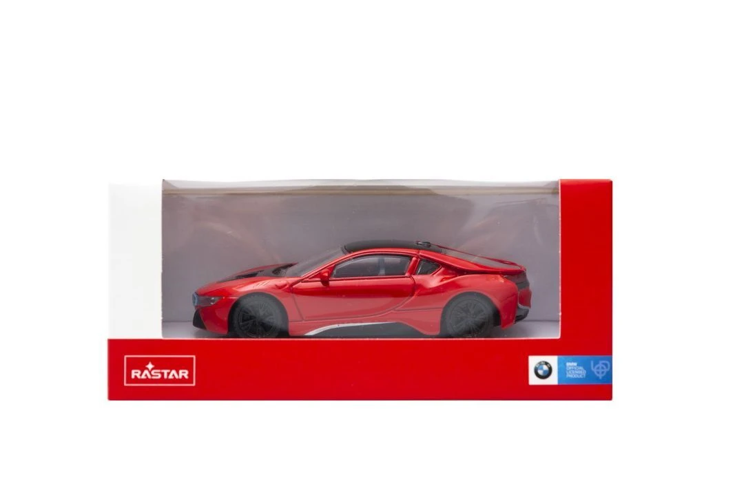 Model samochodu marki BMW I8 w skali 1:43 renomowanej firmy Rastar. Wykonany z odwzorowaniem najdrobniejszych szczegółów. Model wyprodukowany na licencji BMW.