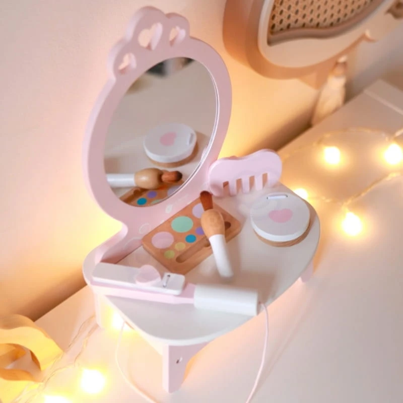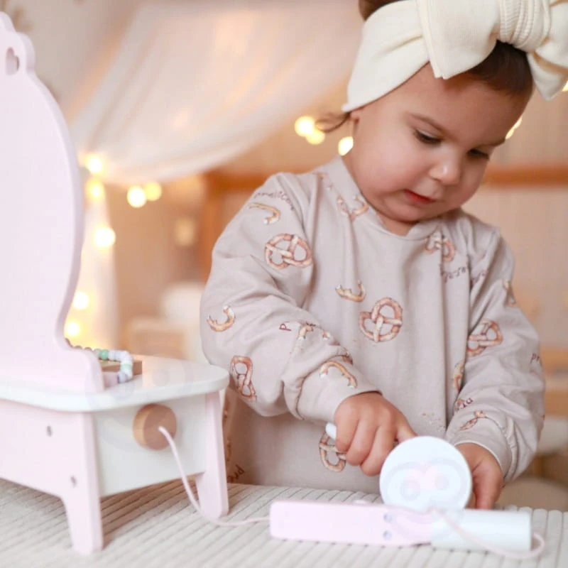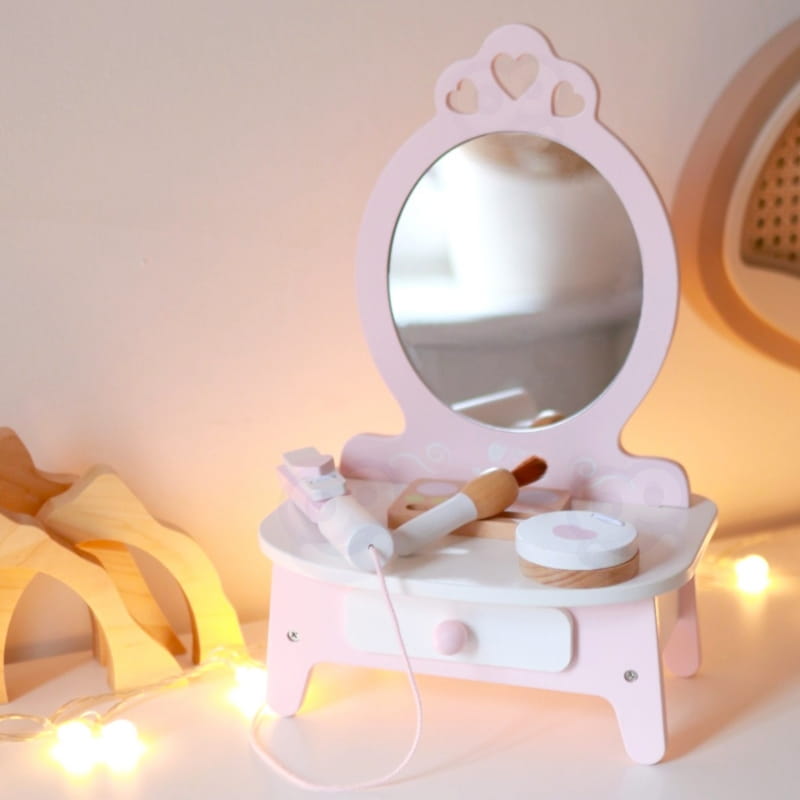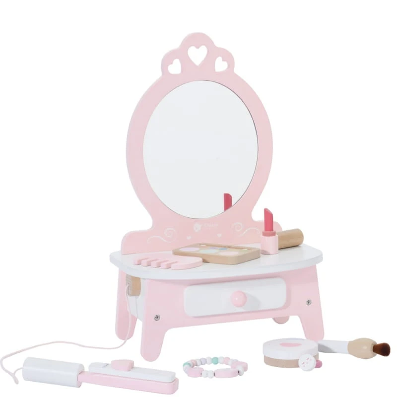 CLASSIC WORLD Drewniana Toaletka dla Dziewczynki z Lustrem + Prostownica 11 akc
