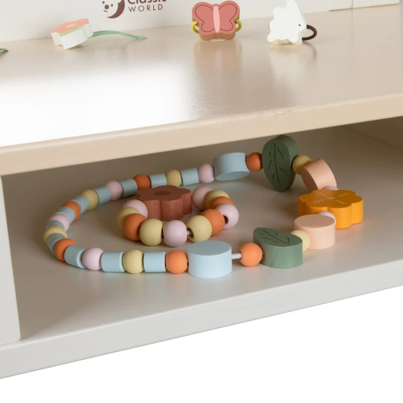 Toaletka z lustrem od Classic World została zaprojektowana specjalnie z myślą o małych dziewczynkach, które marzą o własnym kąciku do zabawy w makijaż i uwielbiają się stroić. Zestaw zawiera okrągły stołek, lustro oraz różnorodne akcesoria, takie jak bransoletka, spinki i naszyjnik. Dzięki tej toaletce dzieci mogą rozwijać swoją wyobraźnię, naśladować dorosłych oraz ćwiczyć zdolności manualne podczas zabawy.